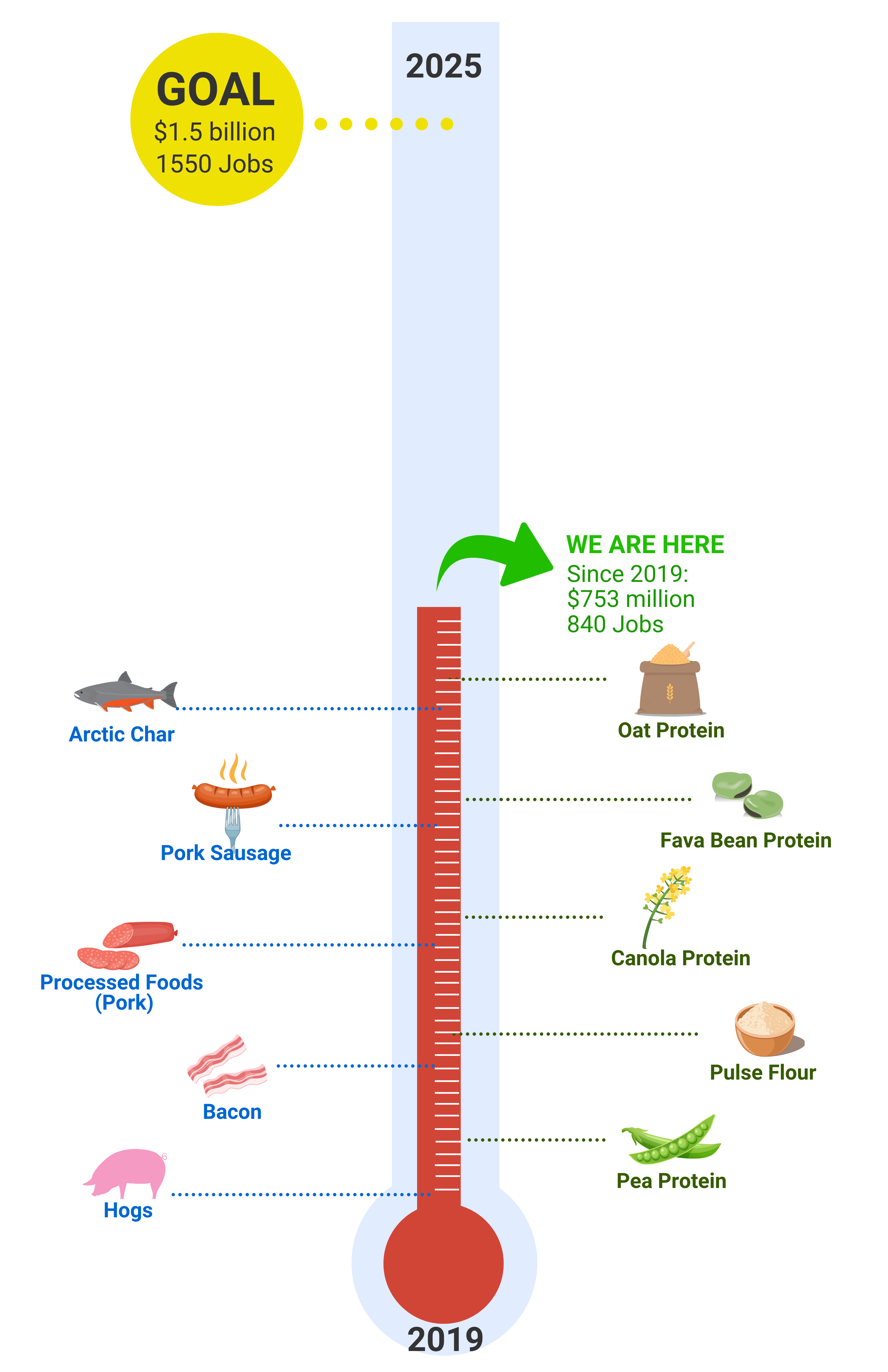 Contact us if you are interested in learning more about the Project ASPIRE Roundtables for Sustainable Protein. Since 2019, Manitoba's protein industry has grown by $1.02 billion in new investments and 1,072 new jobs. Our goal is to nurture a supportive investment environment to reach $1.5 billion in new investments and 1,550 new jobs by 2025.