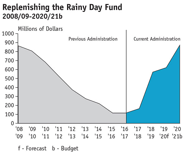 - A replenished Rainy Day Fund, along with $100 million for emergency expenditures.