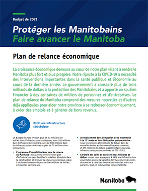La croissance économique demeure au coeur de notre plan visant à rendre le Manitoba plus fort et plus prospère. Notre riposte à la COVID-19 a nécessité des interventions importantes dans la santé publique et l’économie au cours de la dernière année.