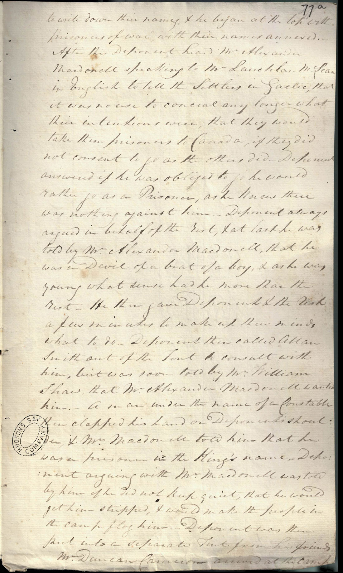 When asked by his examiners – “By what authority did you take charge of Mr McLean as a prisoner!” Shaw replied “by order of Captain Cameron”. Shaw goes on to specify the details of the Captain’s orders and the events that followed.