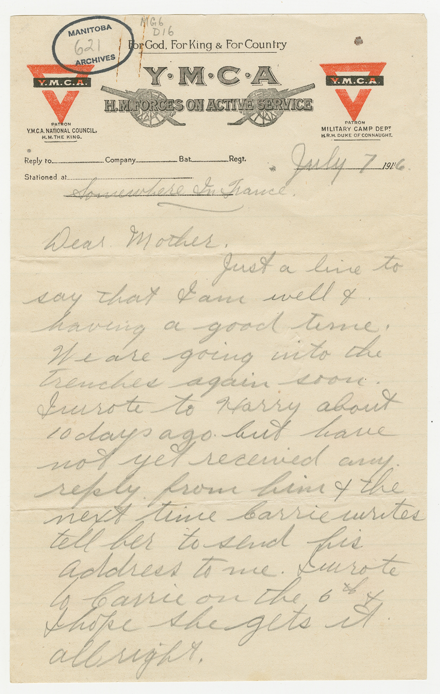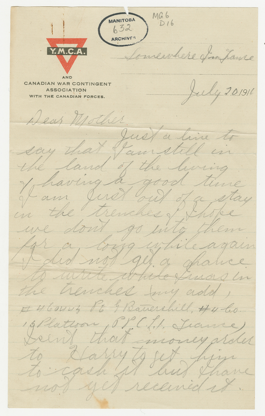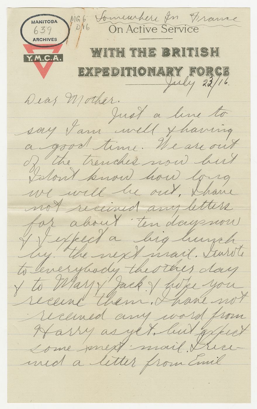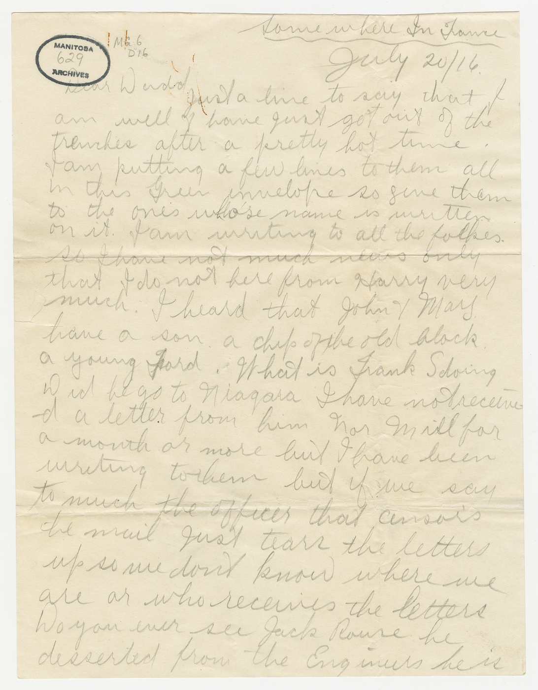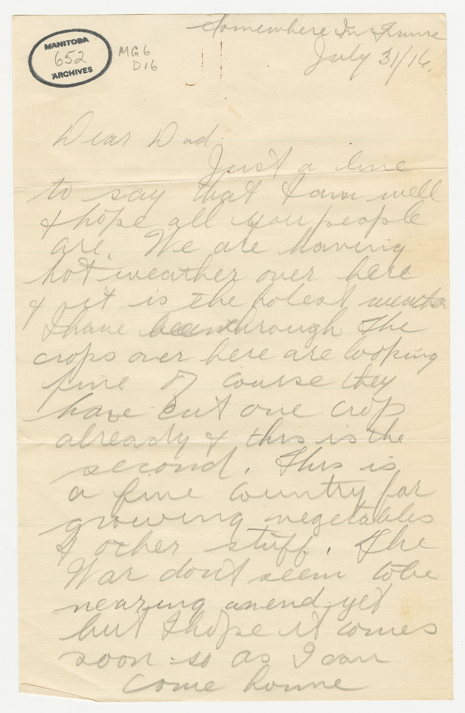 - 4 July: One Manitoba Soldier: Writing letters and waiting for more