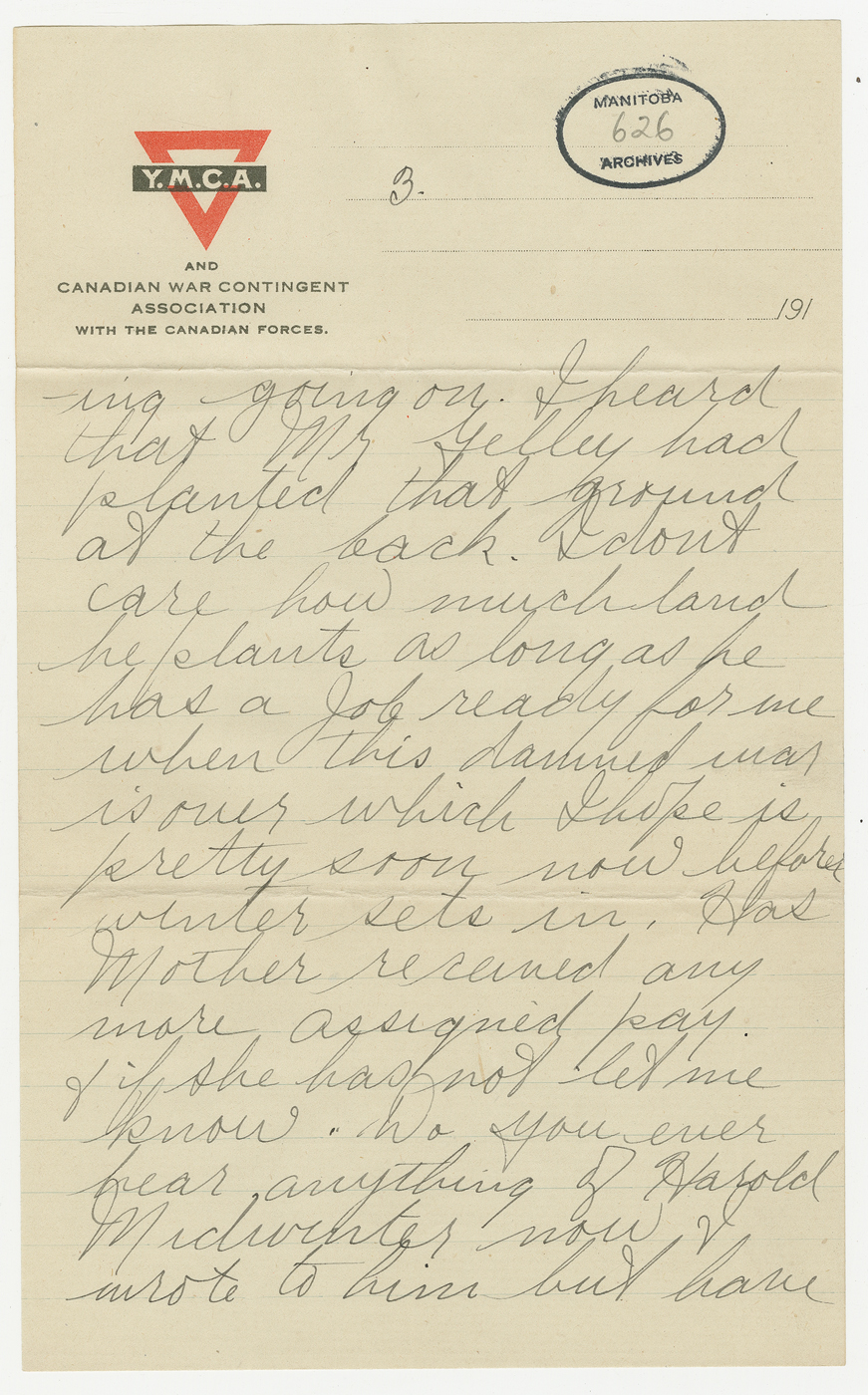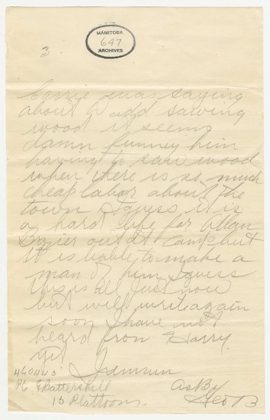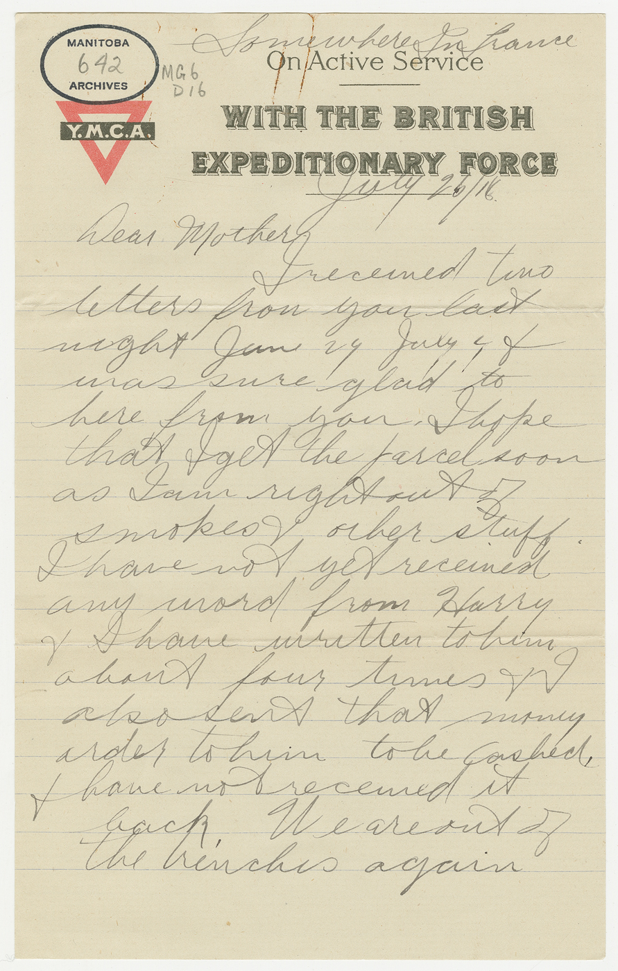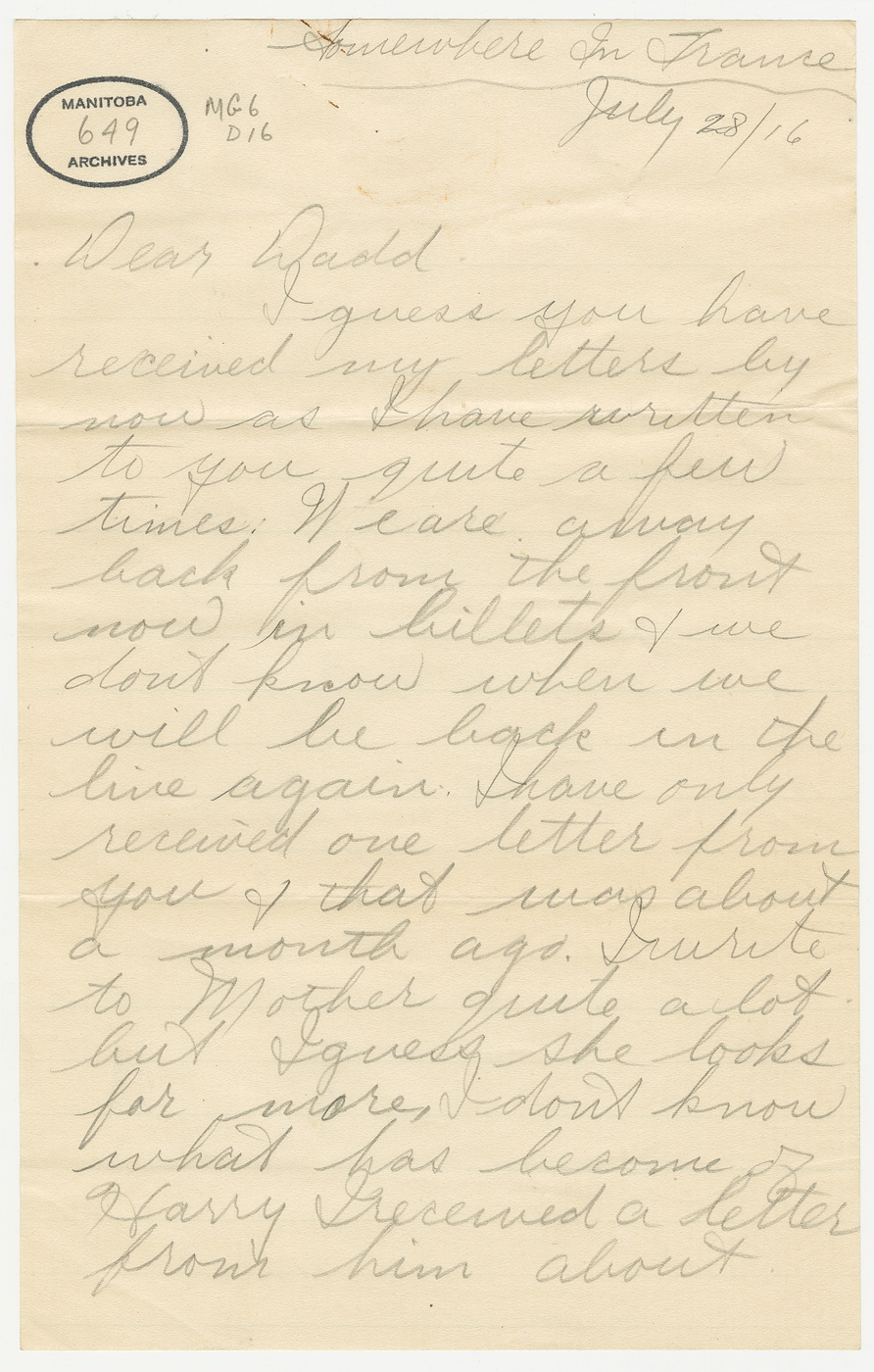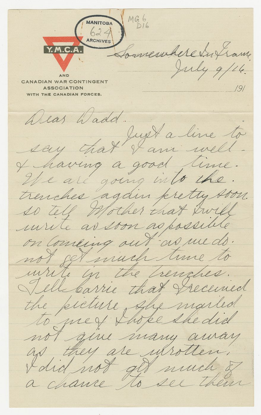 - 4 July: One Manitoba Soldier: Writing letters and waiting for more