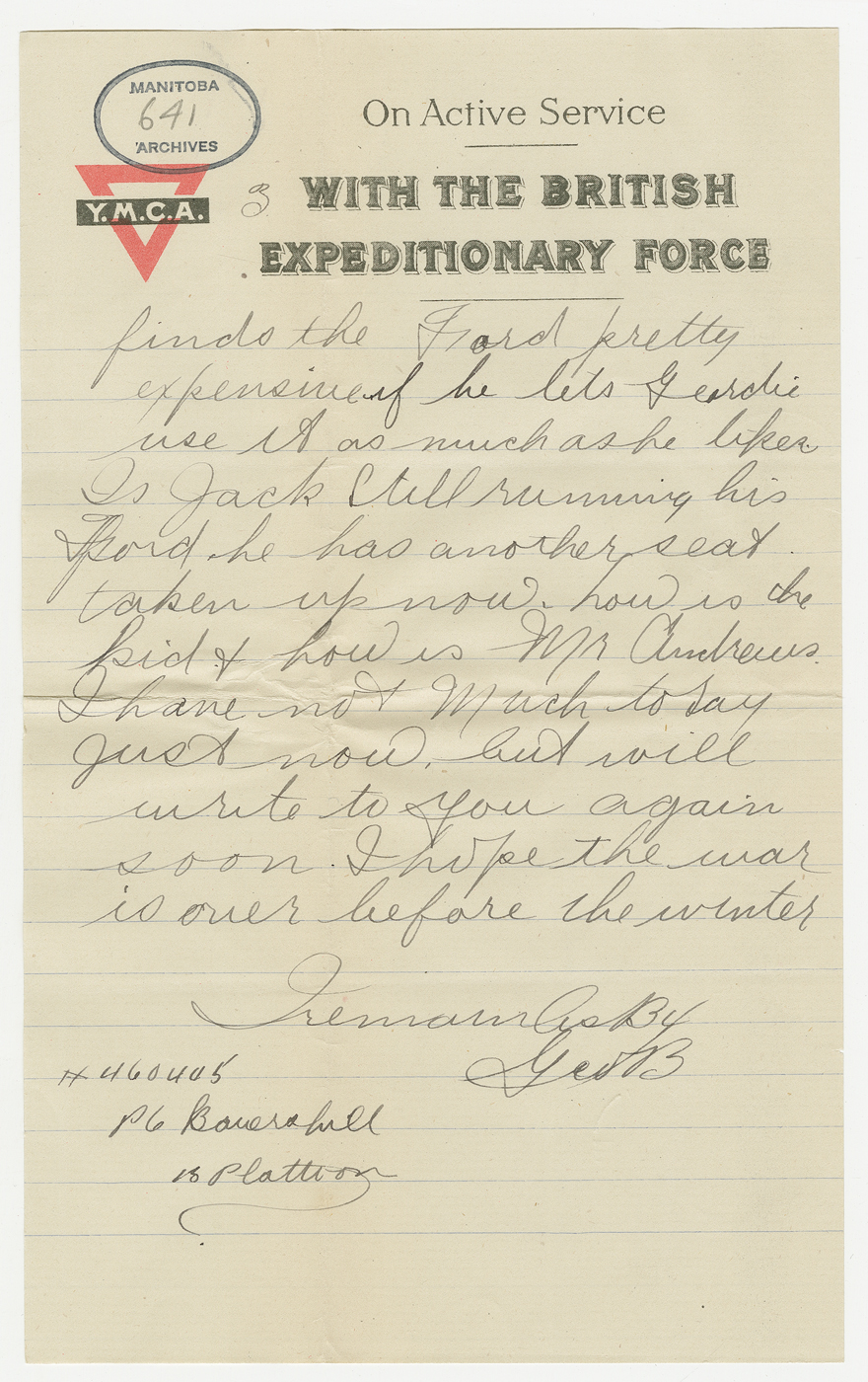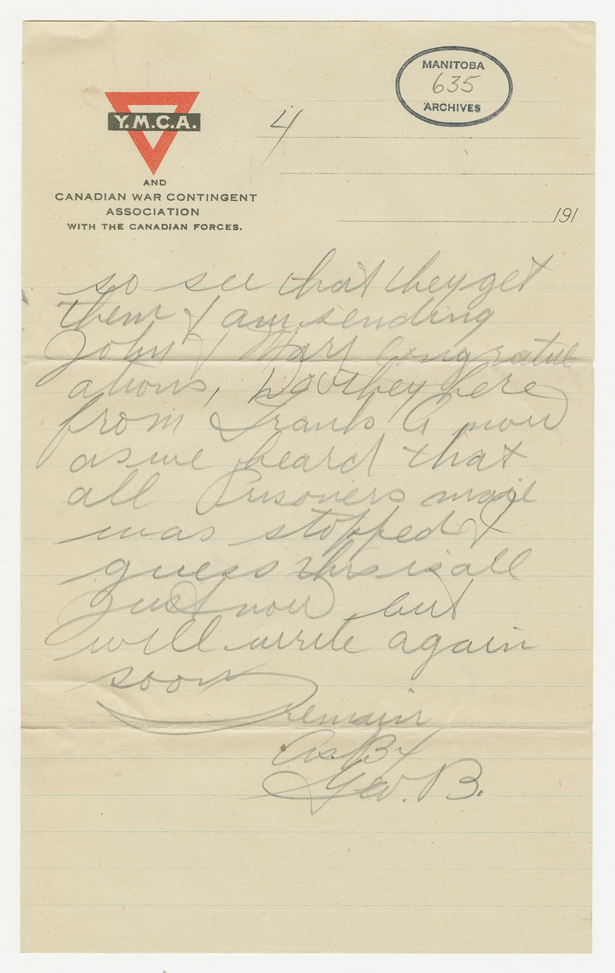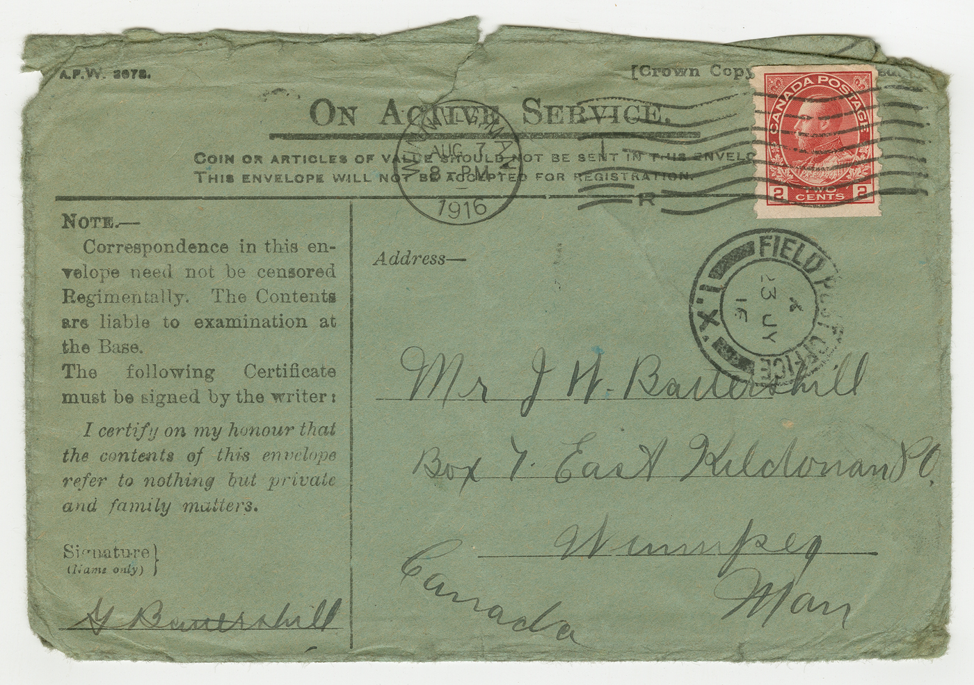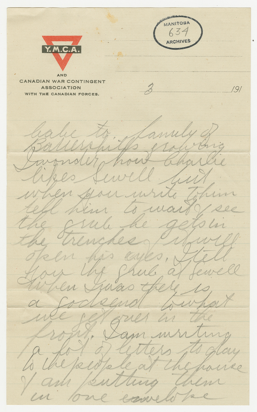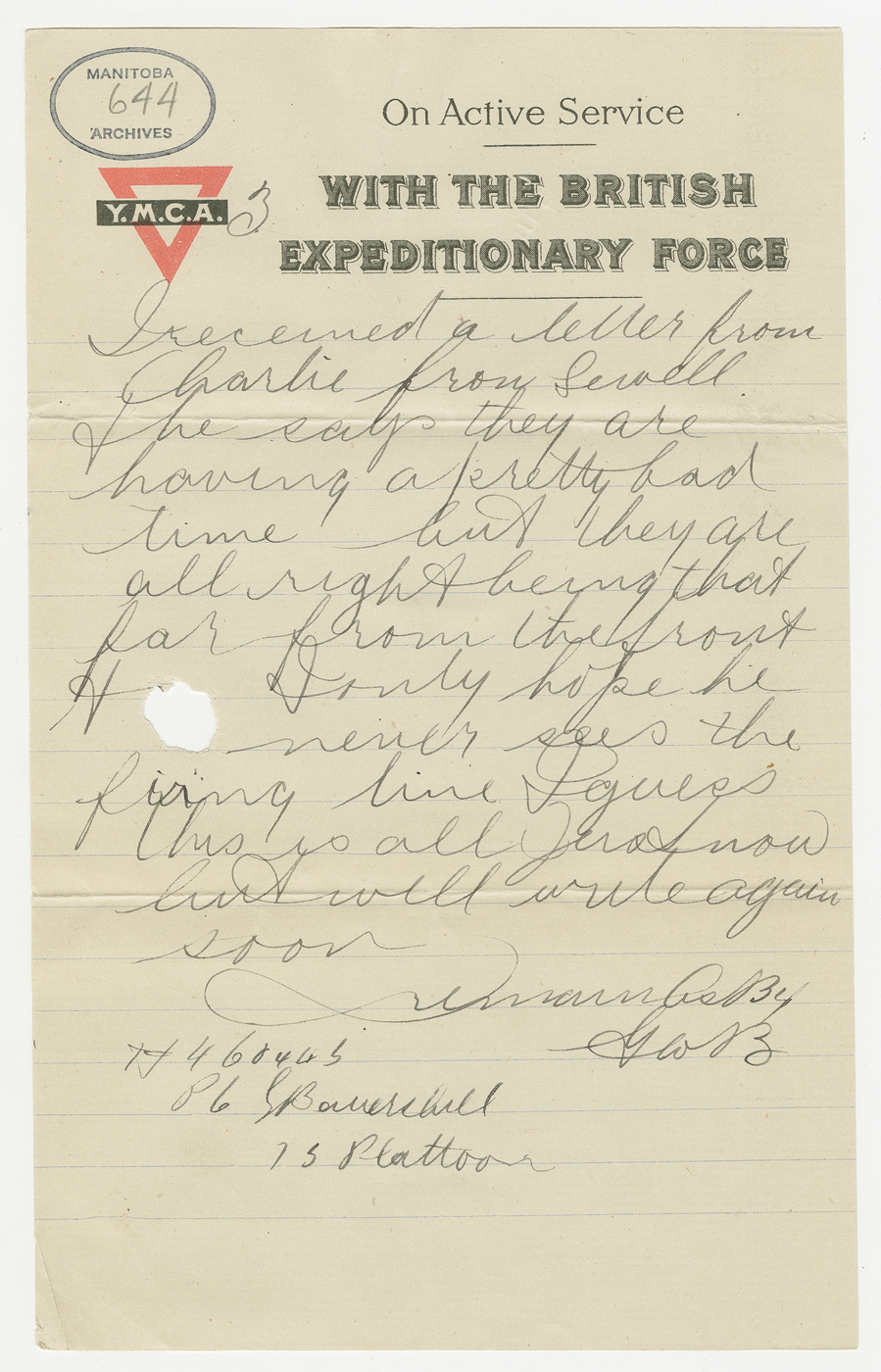 From April 2016 to April 2017, this blog featured the First World War letters of one Manitoba soldier, George Battershill, of East Kildonan. Most of the letters were written to his mother or to his father. The blog follows the letters that George wrote in the same week, one hundred years ago.