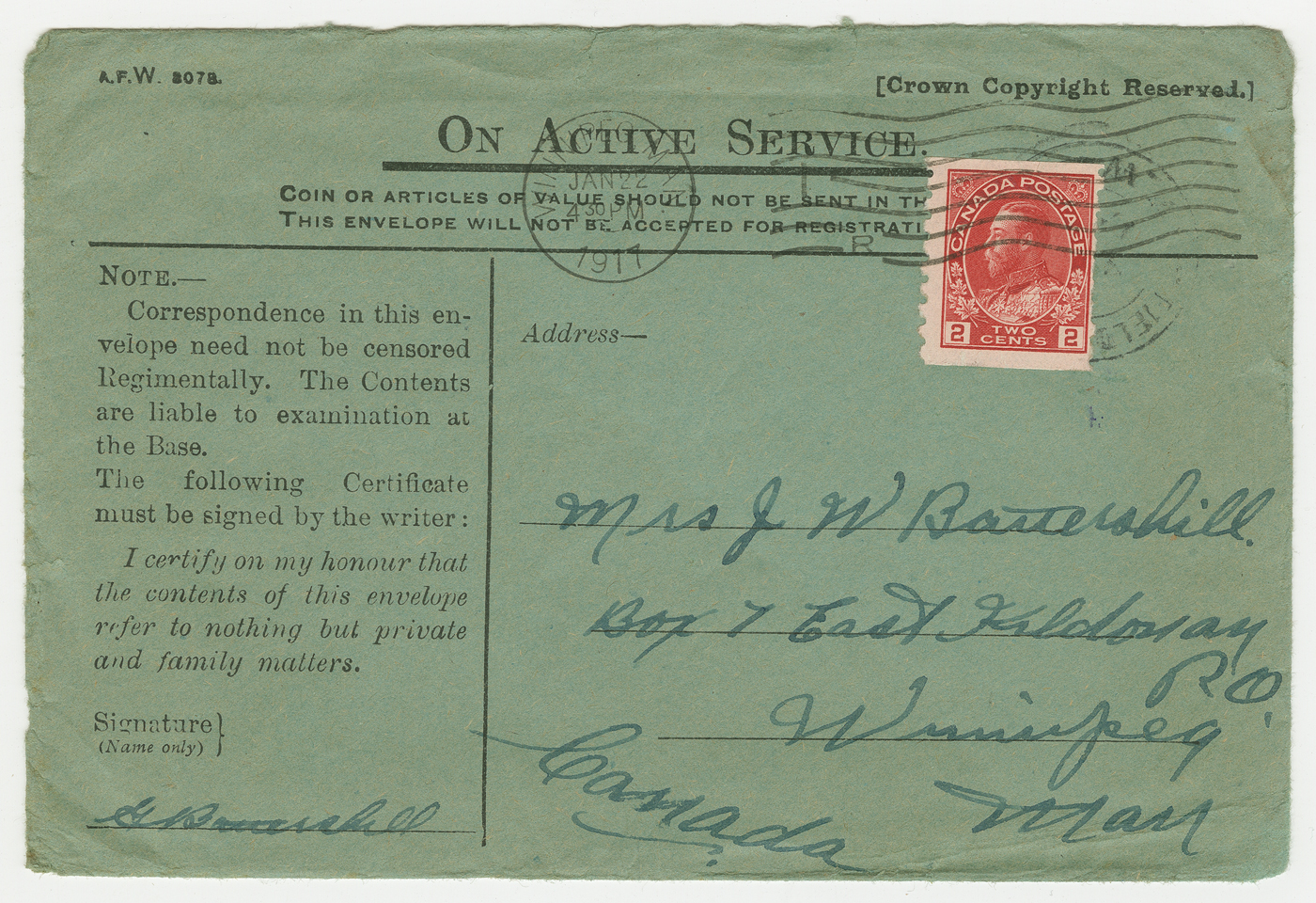 One Manitoba Soldier: Letters and parcels
