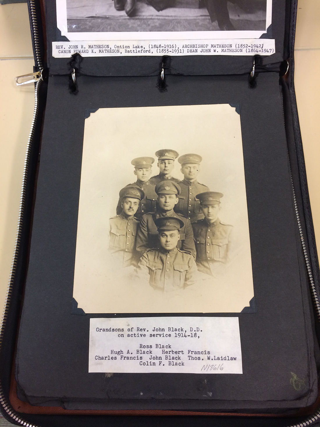 We recently acquired the records of Colin Black, another Manitoban who served in the First World War. The archivist working on these records found that there was a photograph of Colin Black in the Lord Selkirk Association of Rupert’s Land photograph album. Colin Black was the grandson of Rev. John Black, an early Red River settler.