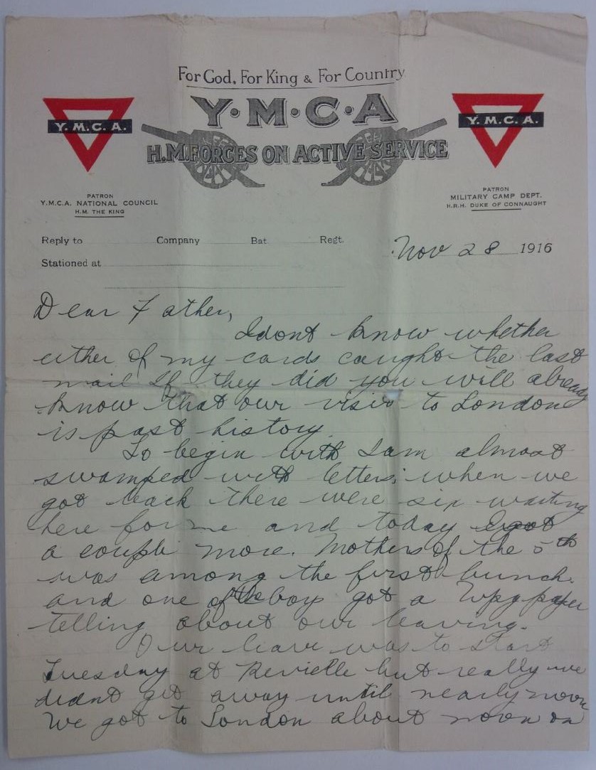 On November 28, 1916 Colin Black wrote to his father about his adventures while on leave in London.
