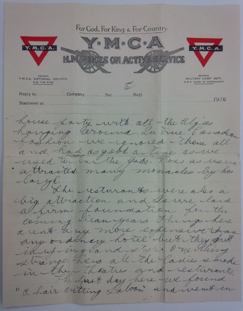 “We got in a taxi and went to the Maple Leaf Club which is run exclusively for Canadian Soldiers by London Society. They charge 1s 4d for bed and breakfast and a real place at that. Princess Pat waiting on one of the tables one day but we didn’t know it until after we were done.”