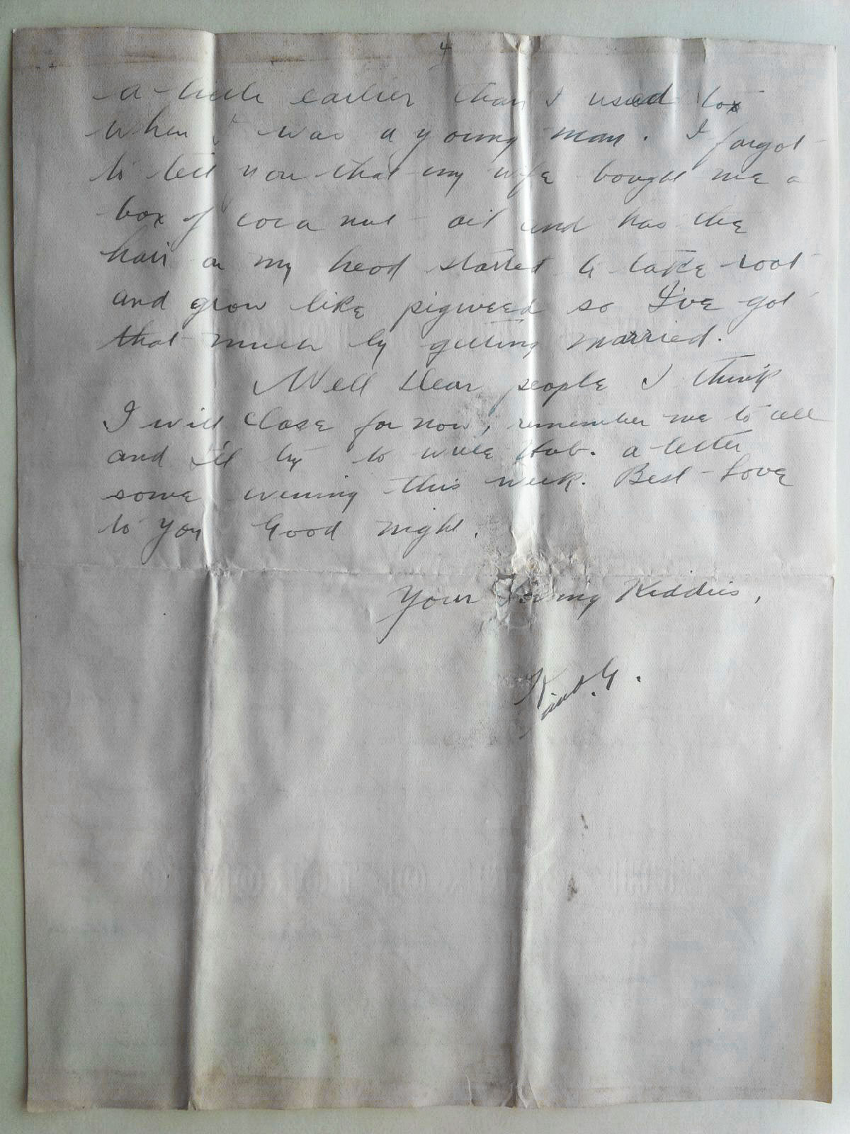 In a September 25, 1917 letter to his parents Gordon wrote: