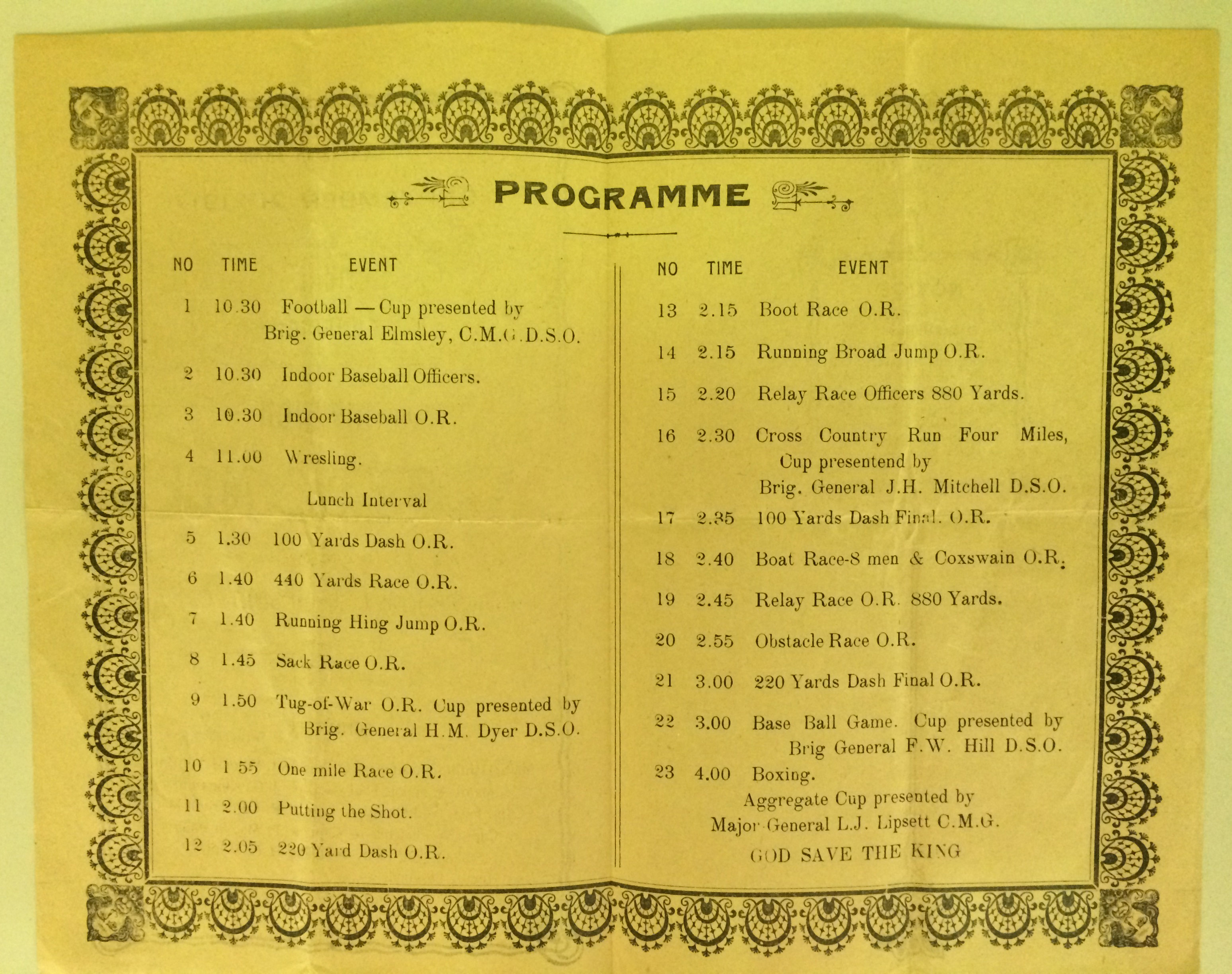 - 25 September: Third Canadian Division Athletic Meet, September 21st, 1917