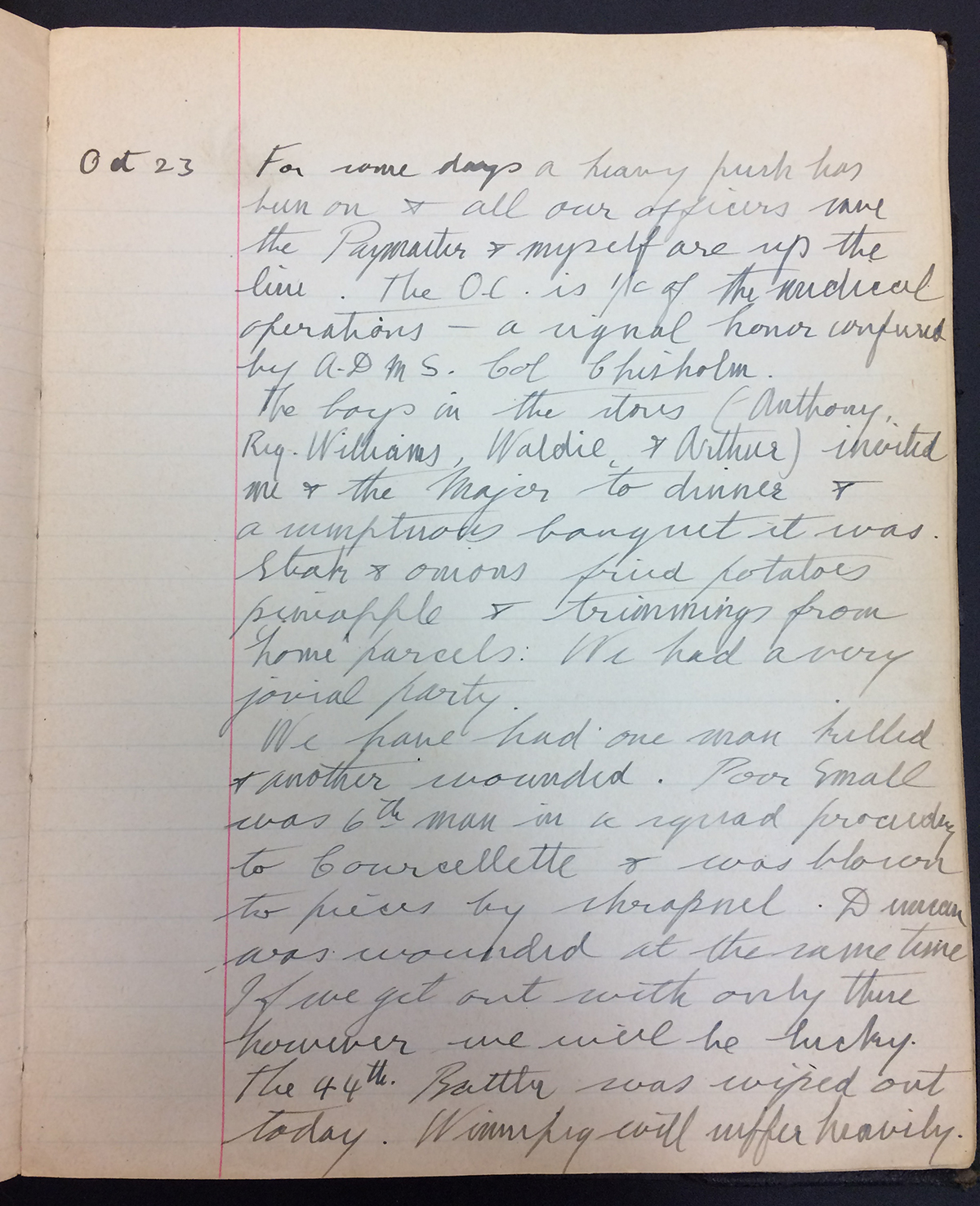 Charles Gordon Diary 1916, October 23, 1916, P8039/2.