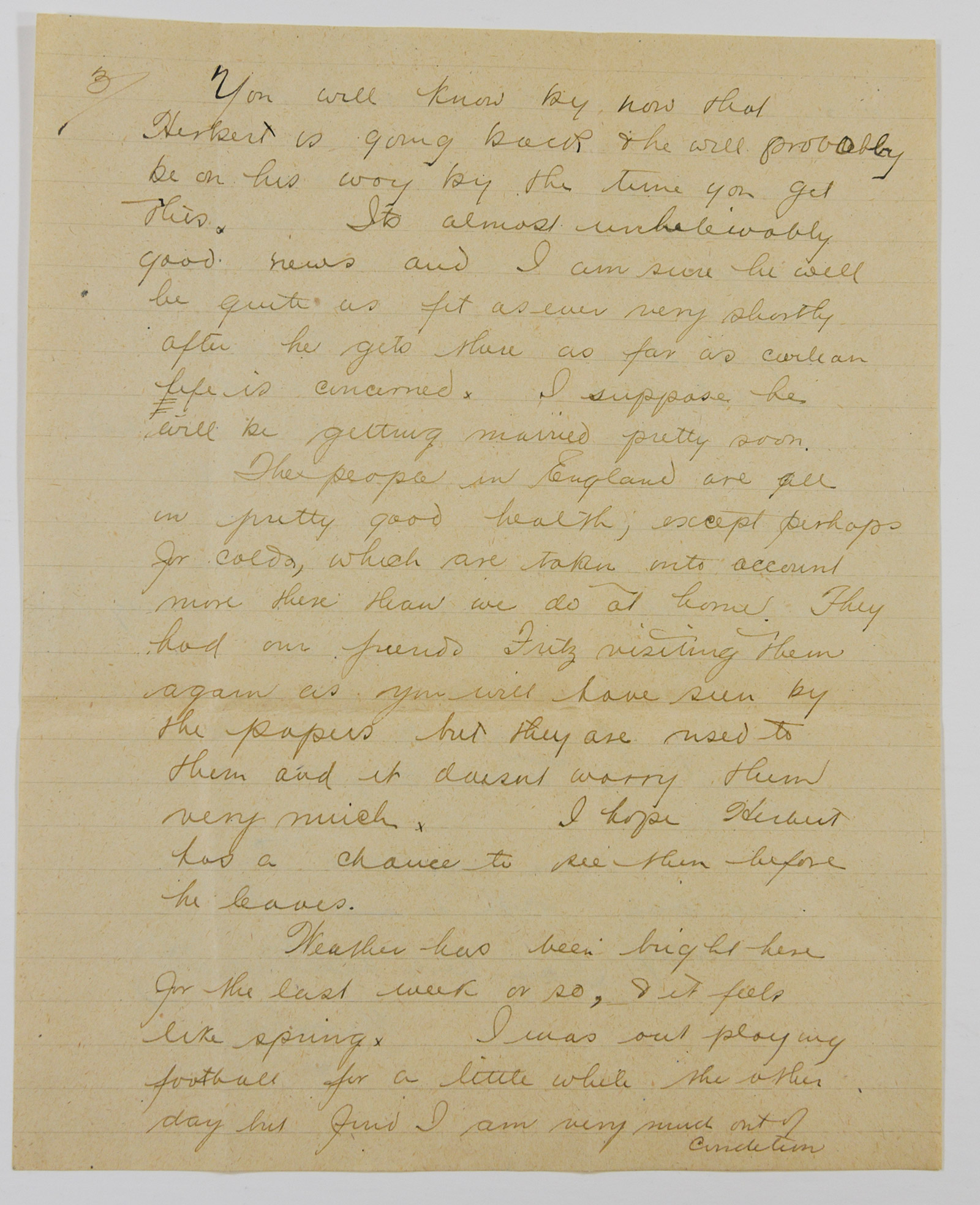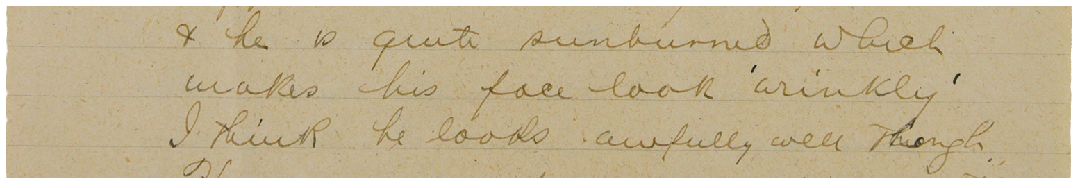 He tells his mother that Russell is sunburned which makes his face look ‘wrinkly’ but reassures her that “he looks awfully well though”.