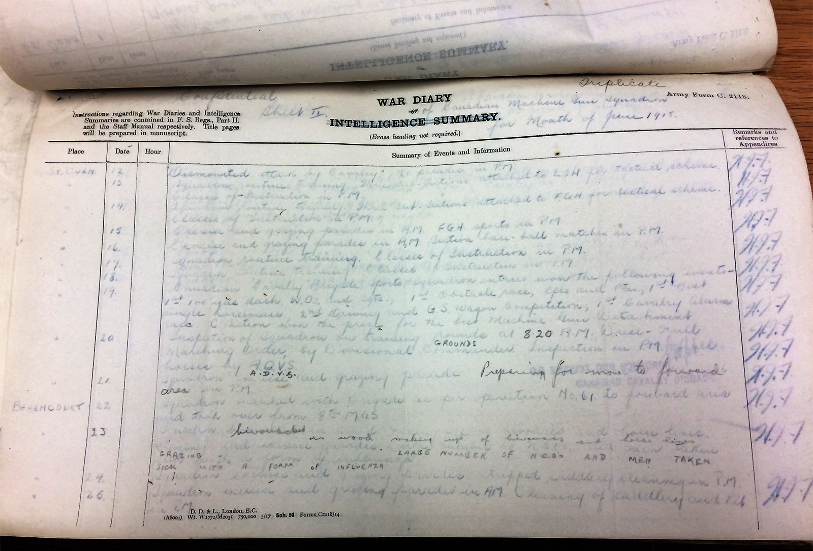 First Cavalry Machine Gun Squadron war diary, June 23, 1918, P8081/1.