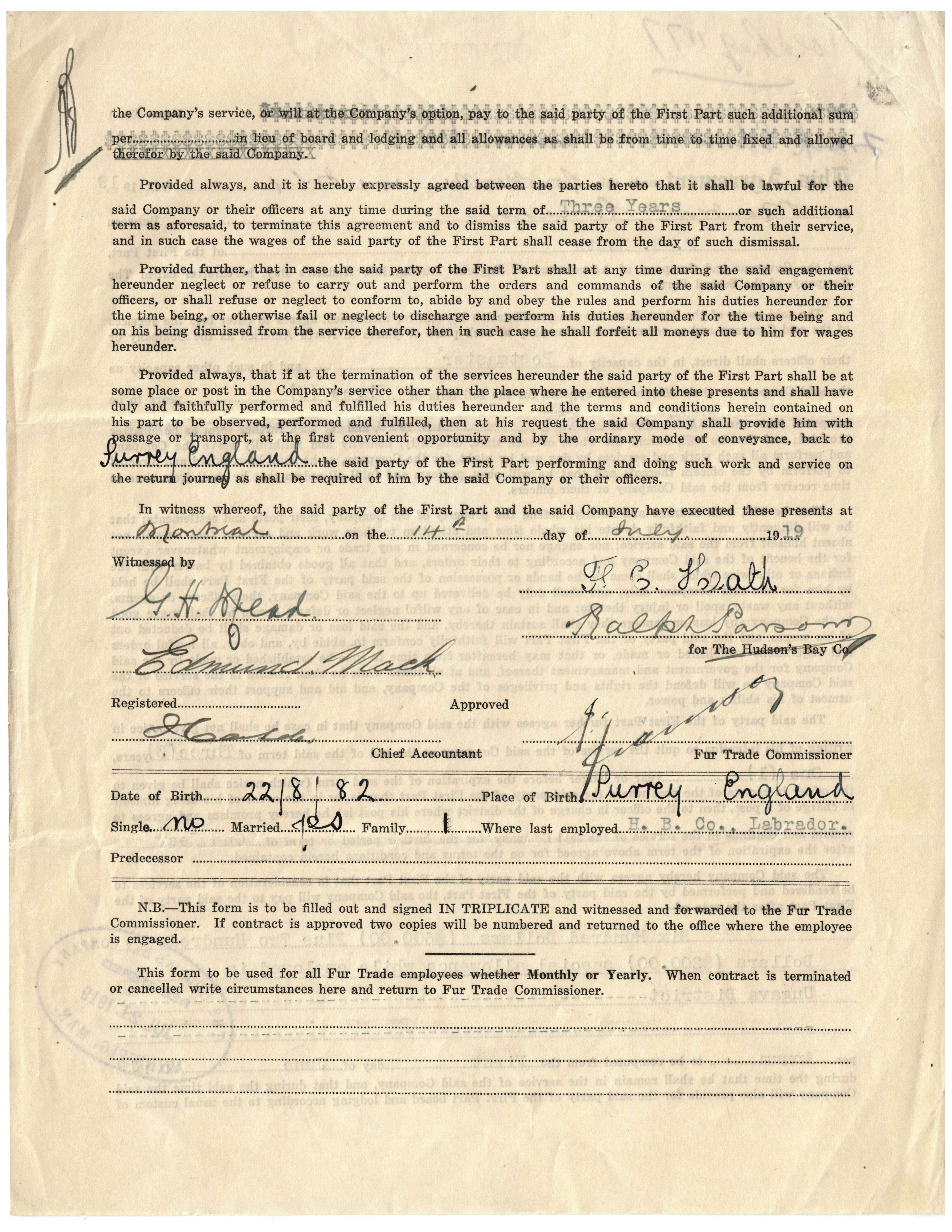 The Hudson’s Bay Company Archives has a number of records that document the careers of HBC employees, such as servants’ contracts, personnel dossiers, records of service, and others. To make your search for information about specific HBC employees easier, our website includes tools such as Biographical Sheets and Name Indexes. These tools contain information taken directly from archival records in our holdings.