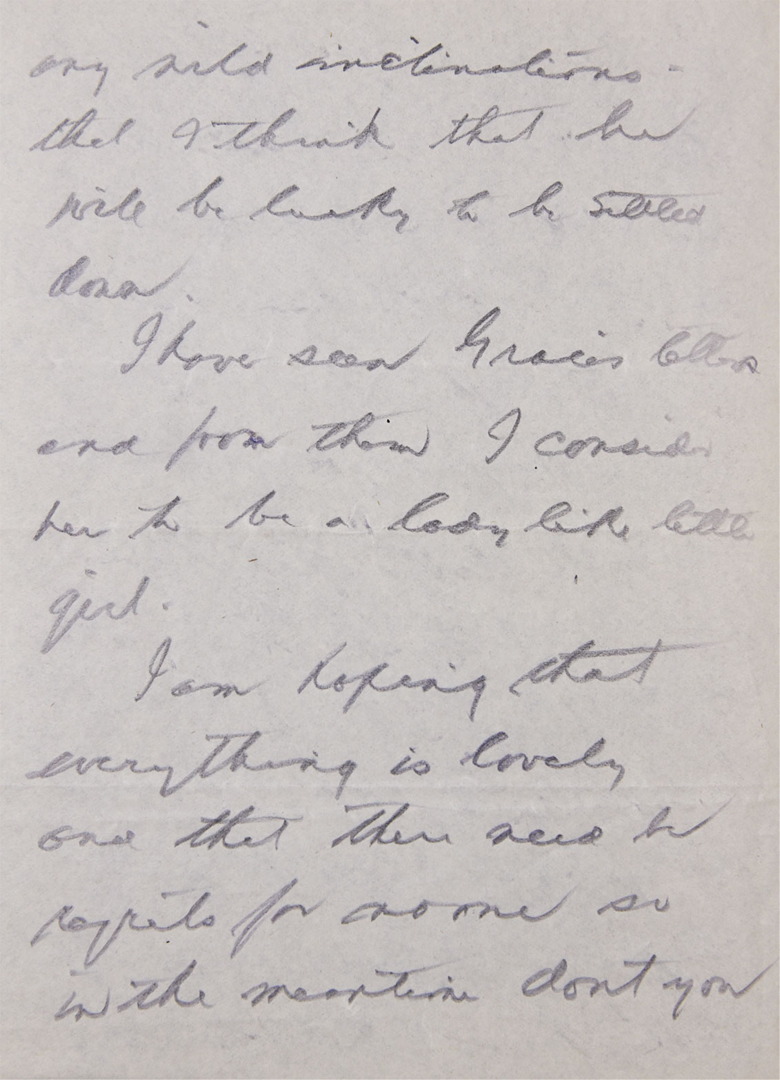 I have seen Grace’s letter and from them I consider her to be a lady like girl.