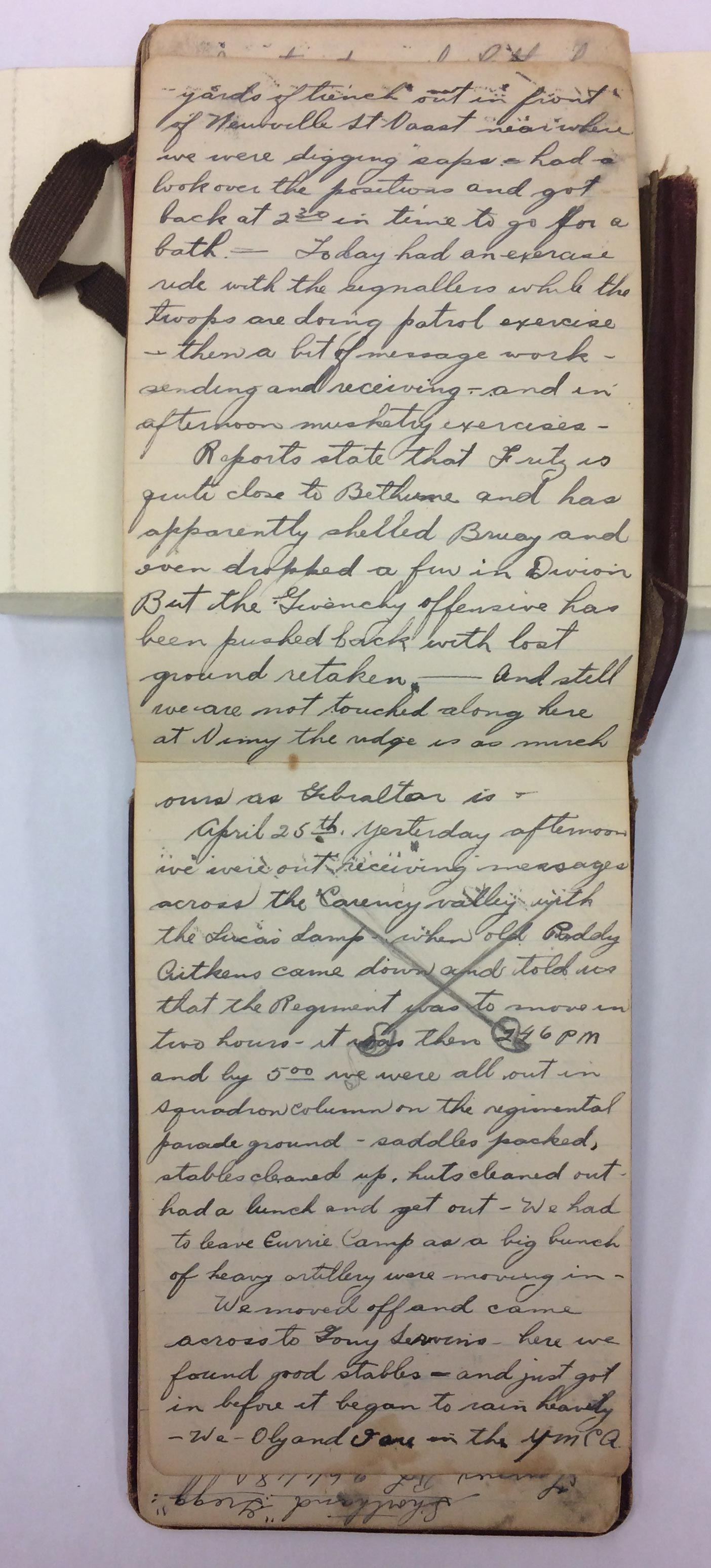 At the Archives of Manitoba, we have two such diaries; one from the First Cavalry Machine Gun Squadron and another from the Second Canadian Motor Machine Gun Brigade.