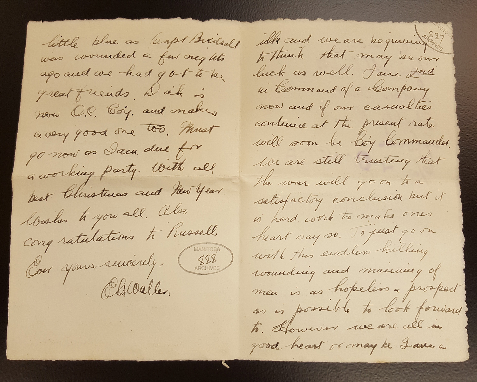 Archives of Manitoba, Charles and Augusta Boulton Family fonds, Boulton Family Correspondence 832-907, pages 887-888 December 18, 1915.