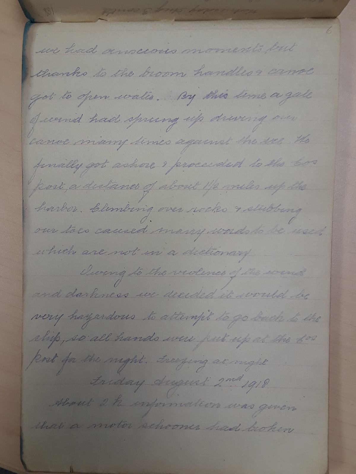 Hudson’s Bay Company Archives, Archives of Manitoba, Purser's diaries for the "Nascopie," "Pelican," "Baychimo," and "Bayeskimo,” 1 August 1918, HBCA RG3/8/1.