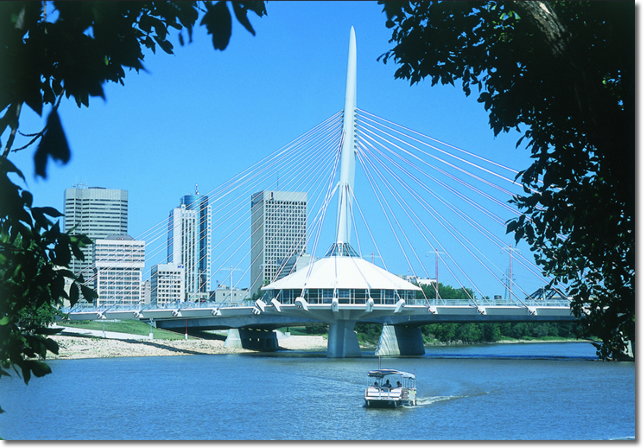 Esplanade Riel is the magnificent cable stayed footbridge connecting St. Boniface to The Forks. It provides a wonderful view of Old St. Boniface, The Forks, and The Forks National Historic Site.