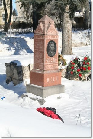 Louis Riel was hanged in Regina on November 16, 1885, for his role as leader of the North-West Rebellion against the Canadian government. His body then lay in state at his mother’s house on River Road in St. Vital. He was buried in the picturesque St. Boniface Roman Catholic Cathedral Cemetery (190 ave de la Cathédrale), which is located northeast of the St. Boniface Museum (494 Taché Avenue).