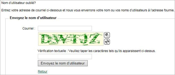 Cliquez sur le bouton « Envoyer le nom d’utilisateur » et vous recevrez un courriel avec la liste des noms d’utilisateur associés à cette adresse de courriel.