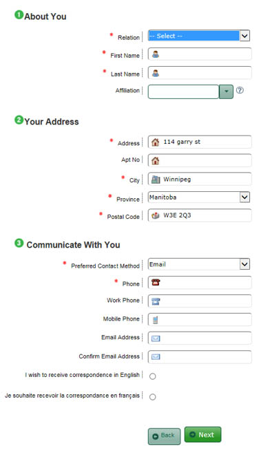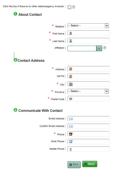 You have the choice of adding a second contact to your account. This can be a parent, caregiver, guardian, relative or agency who can be contacted about child care. If you are adding a second contact, the spaces with a (*) must be filled in to complete the registration.