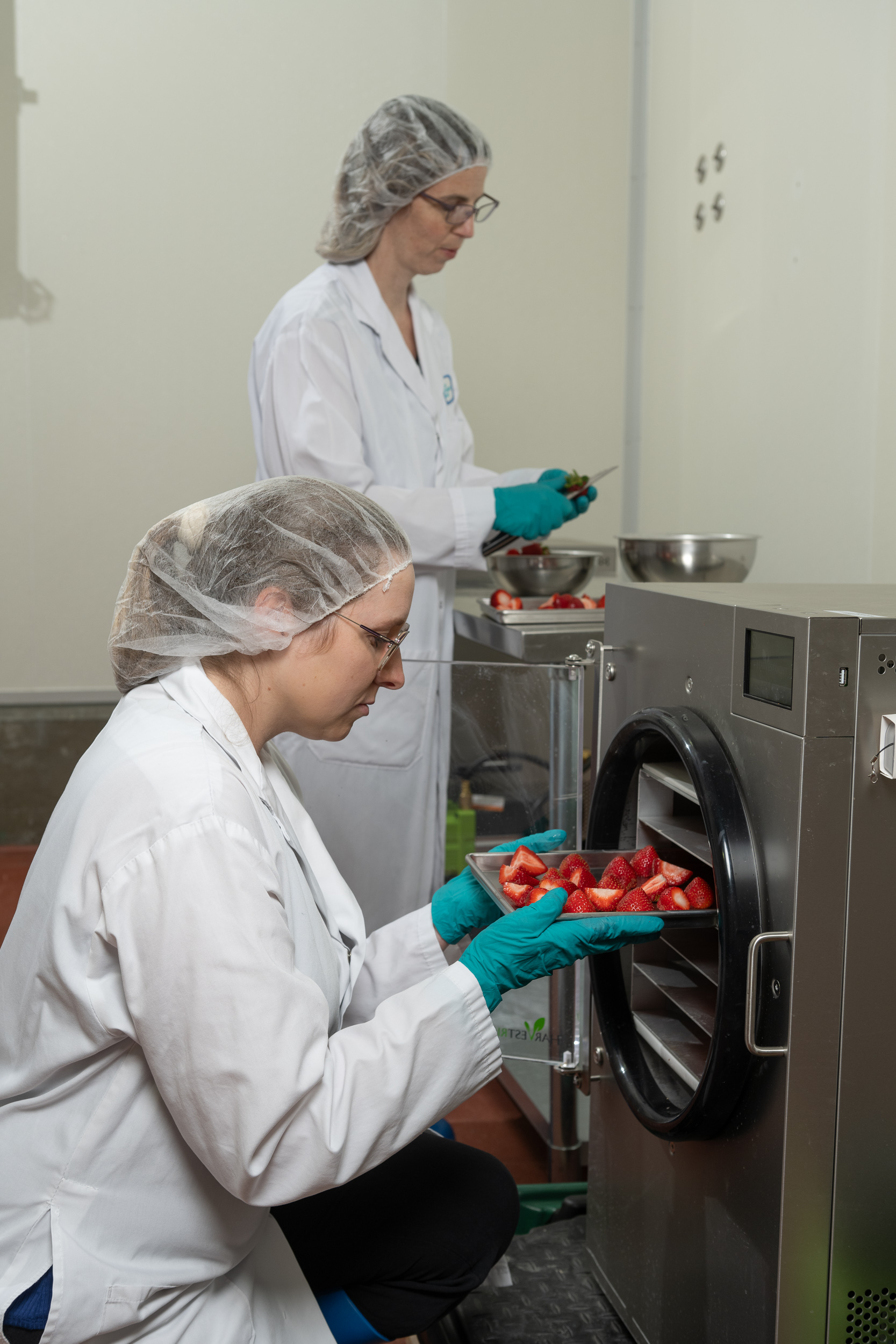 The Manitoba Food Development Centre provides a comprehensive suite of drying technologies, including tray drying, spray drying, drum drying and freeze drying. Our spray dryer converts liquids, such as extracted protein slurries, into high-value protein concentrates and isolate powders. Drum drying is for processing a diverse array of products, including spent meals from protein extraction, various proteins, and fruit and vegetable purees. Protein extracted from bench scale processes can be freeze dried, as well as spent meals but also high value products such as fruit and vegetables as freeze drying preserves nutrients and colour.