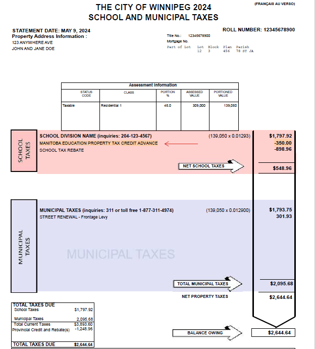 Note that the EPTCA is a different credit than the Manitoba School Tax Rebate, which was a 50% rebate that also appeared on the 2024 property tax bill.