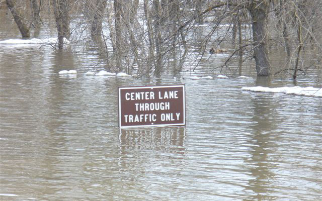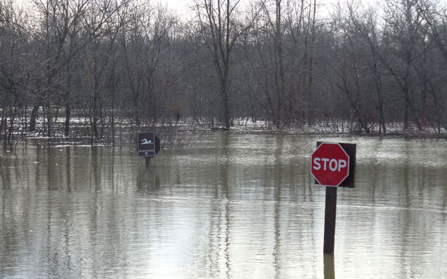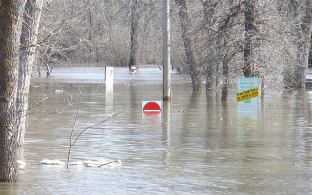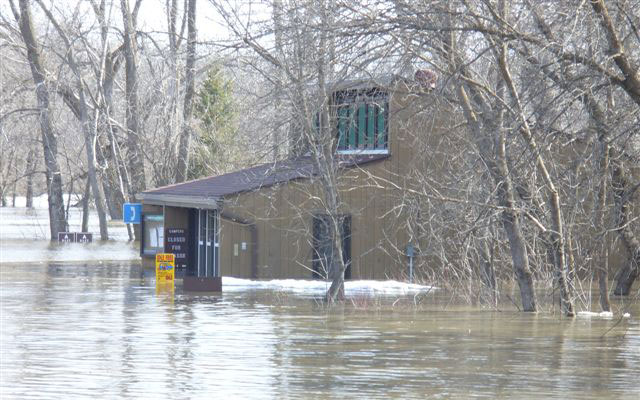 Flooding at Spruce Woods Provincial Park campground due to an ice jam on the Assiniboine River.