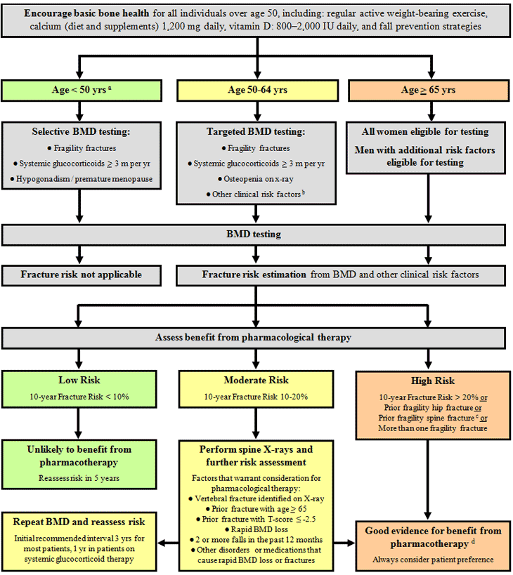 This document, based on the 2010 Clinical Practice Guidelines for the Diagnosis and Management of Osteoporosis in Canada, is designed to provide an evidence-based process to identify and treat osteoporosis.