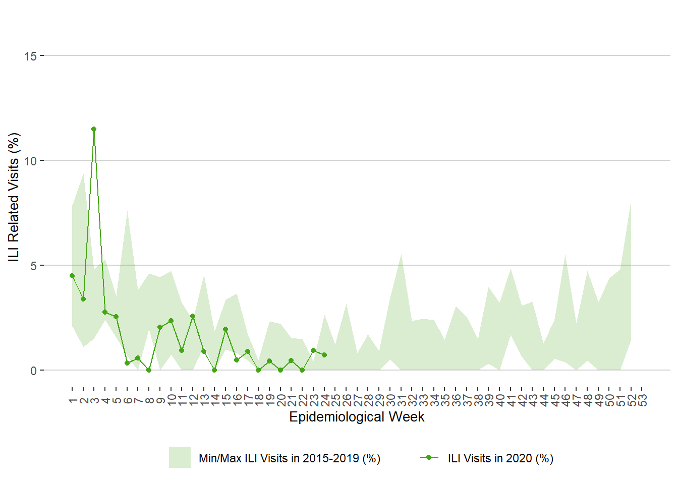 Figure 8. Weekly Percentage of ILI Related Visits to Sentinel Physicians, Manitoba