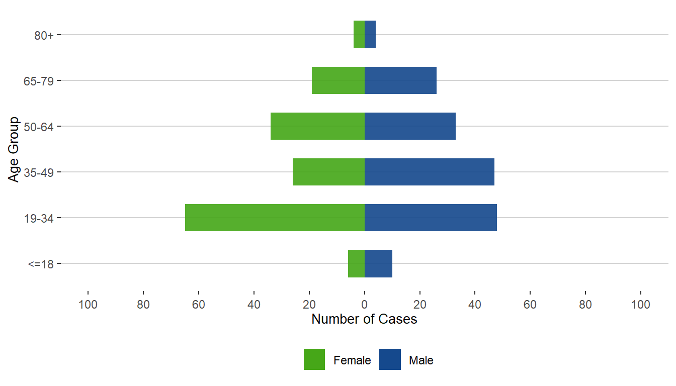 Back Figure 2. Cases of COVID-19 by Sex and Age Group, Manitoba, 2020
