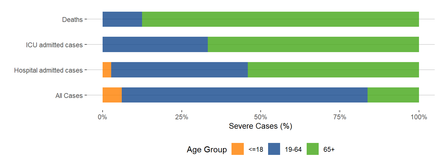 Figure 5. Age Distribution of Severe COVID-19 Cases Compared to All Cases, Manitoba, 2020