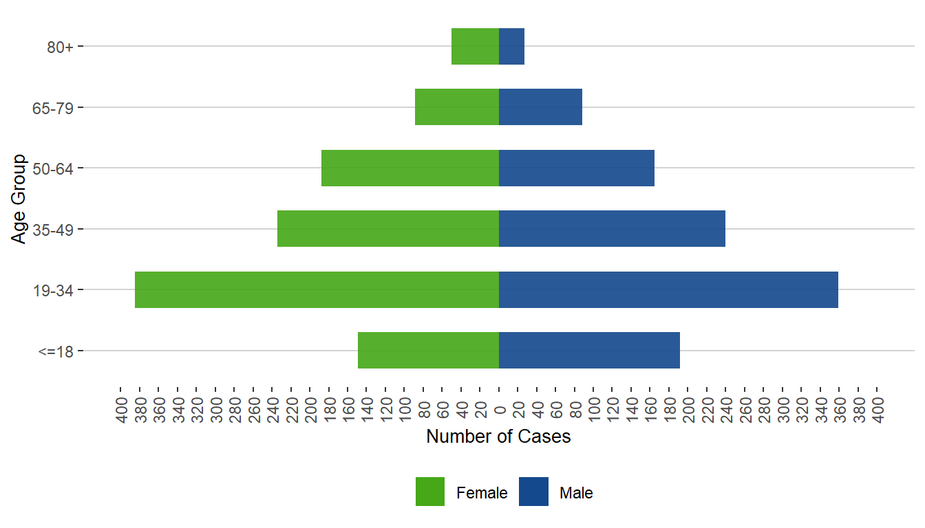 Back Figure 2. Cases of COVID-19 by Sex and Age Group, Manitoba, 2020