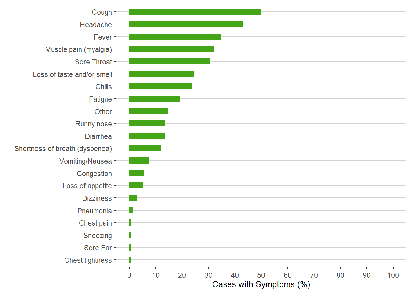Note: Other symptoms include those less common symptoms such as sweating, runny eyes, itchy throat, etc.