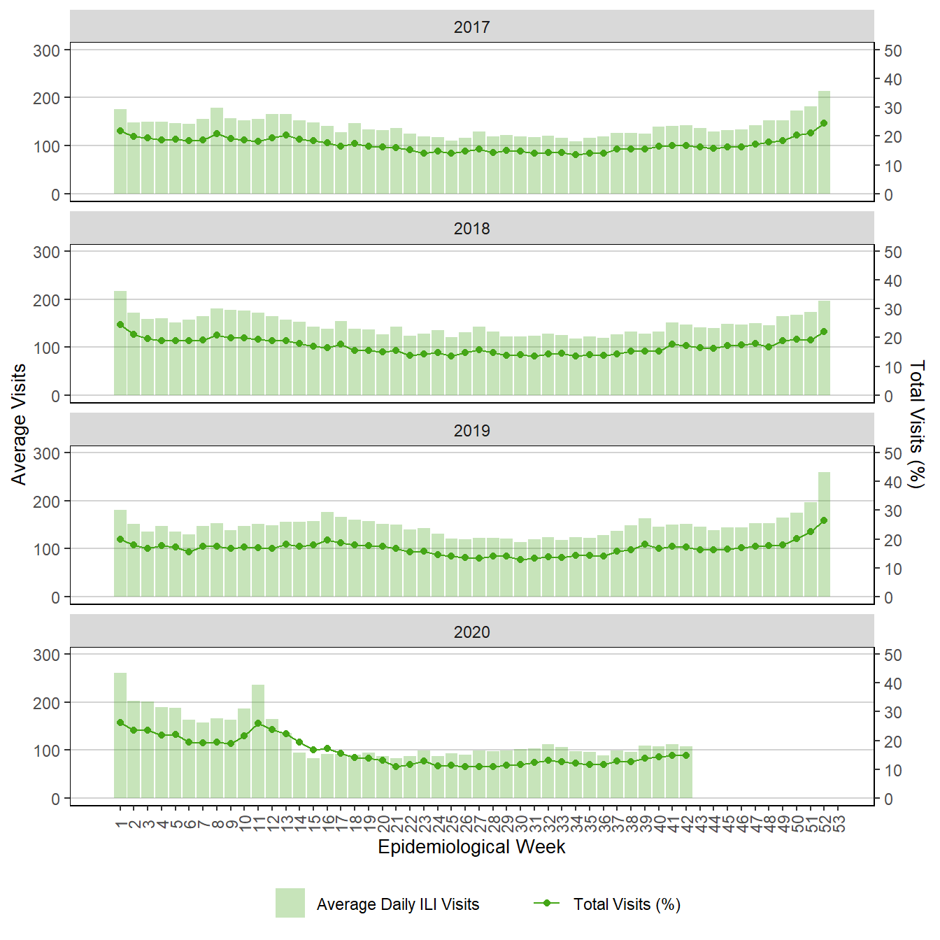 Figure 10. Weekly Percentage of ILI Related Visits to Sentinel Physicians, Manitoba, 2017 – 2020