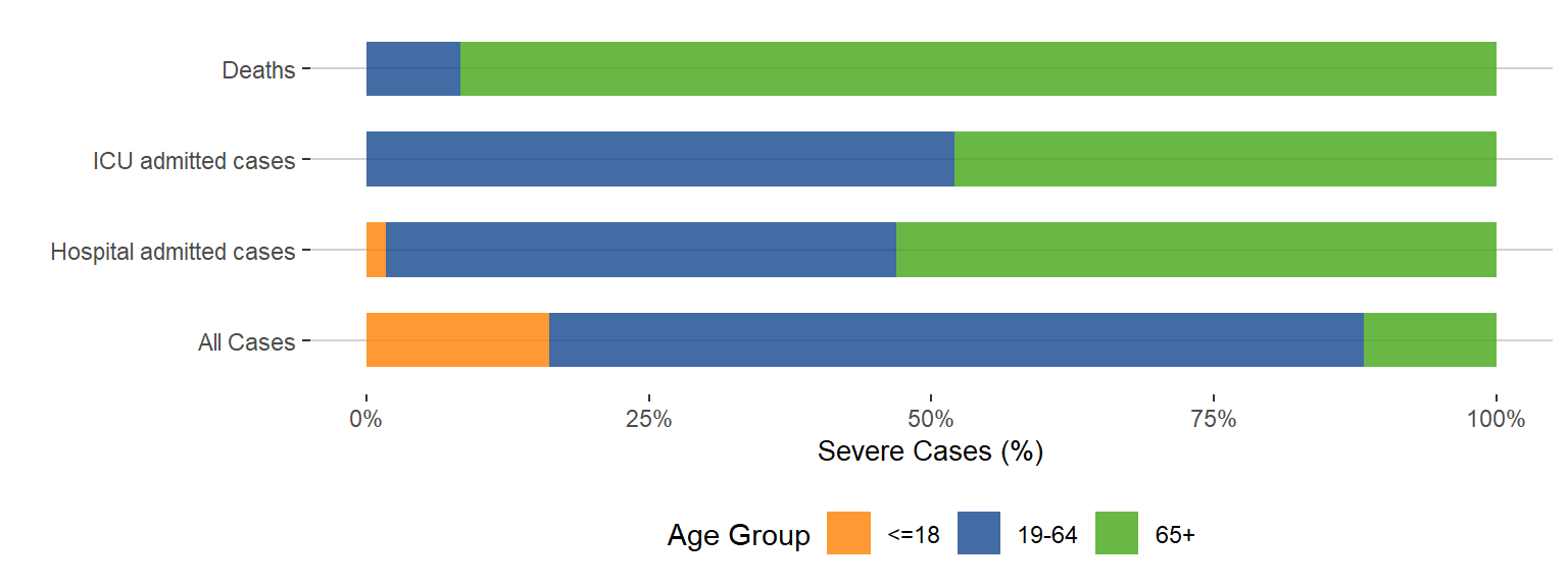 Overall, older adults and those with underlying illnesses are at higher risk for severe outcomes as a result of COVID-19 infection.
