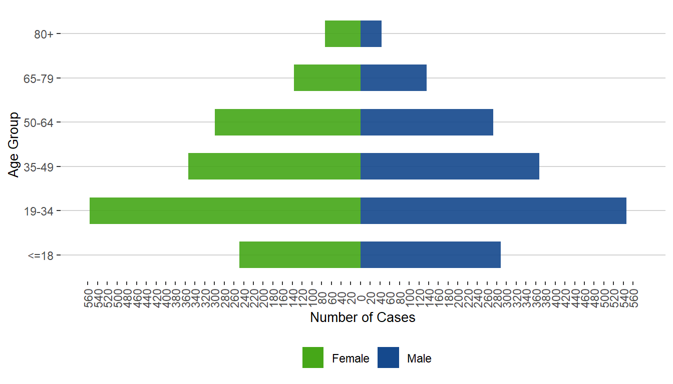 Figure 2. Cases of COVID-19 by Sex and Age Group, Manitoba, 2020