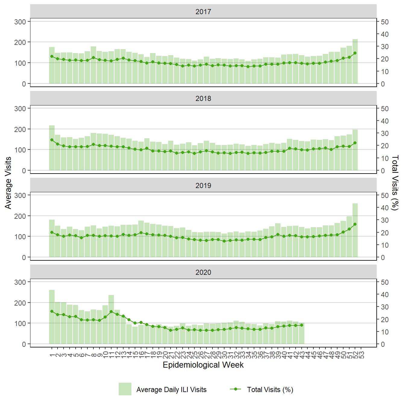 Figure 10. Weekly Percentage of ILI Related Visits to Sentinel Physicians, Manitoba, 2017 – 2020