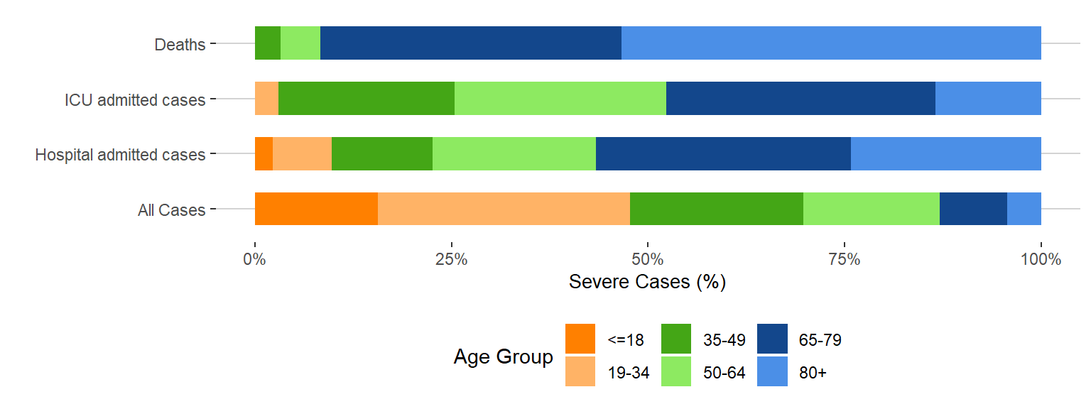 Figure 6. Age Distribution of Severe COVID-19 Cases Compared to All Cases, Manitoba, 2020