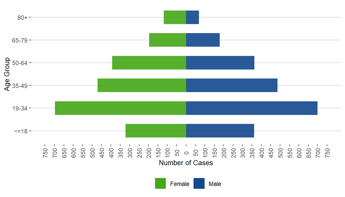 Back Figure 2. Cases of COVID-19 by Sex and Age Group, Manitoba, 2020