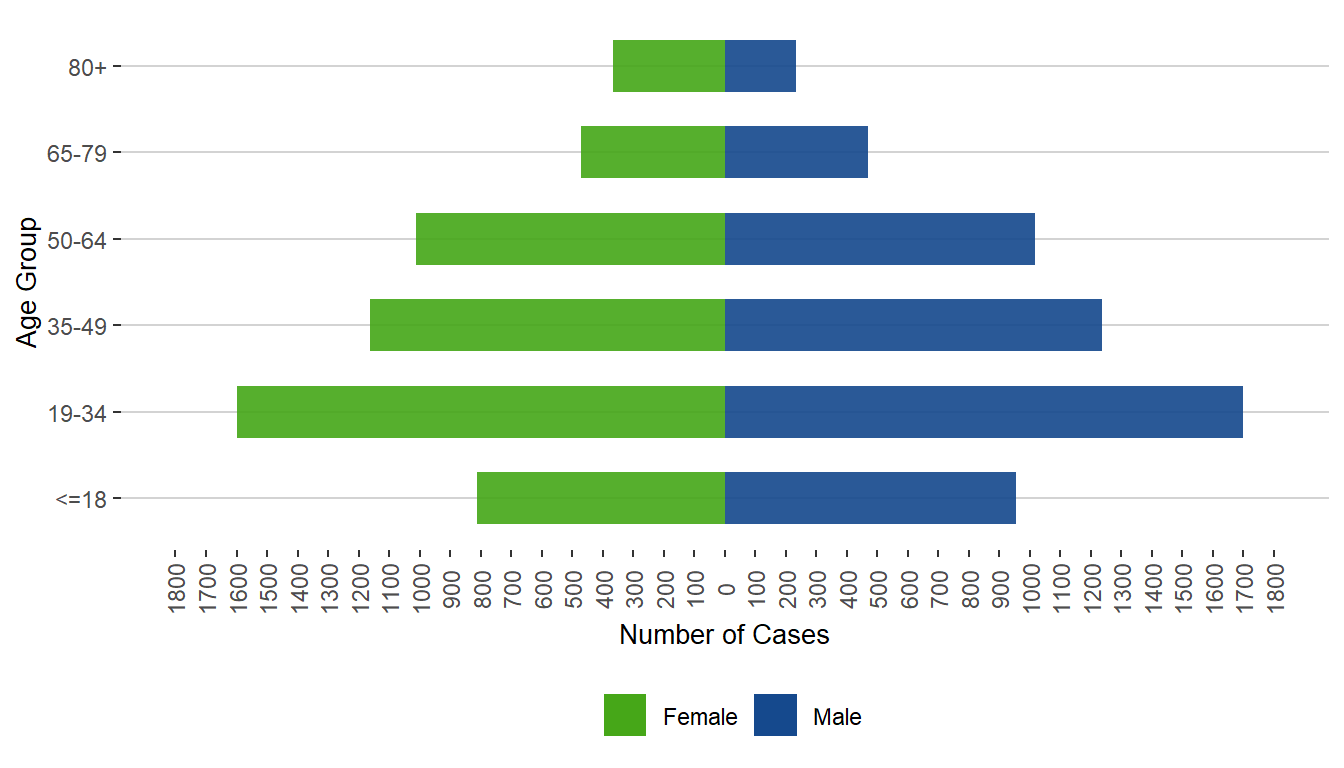 Back Figure 2. Cases of COVID-19 by Sex and Age Group, Manitoba, 2020