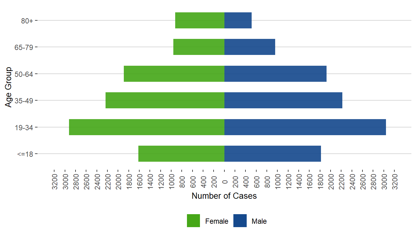 Figure 2. Cases of COVID-19 by Sex and Age Group, Manitoba, 2020