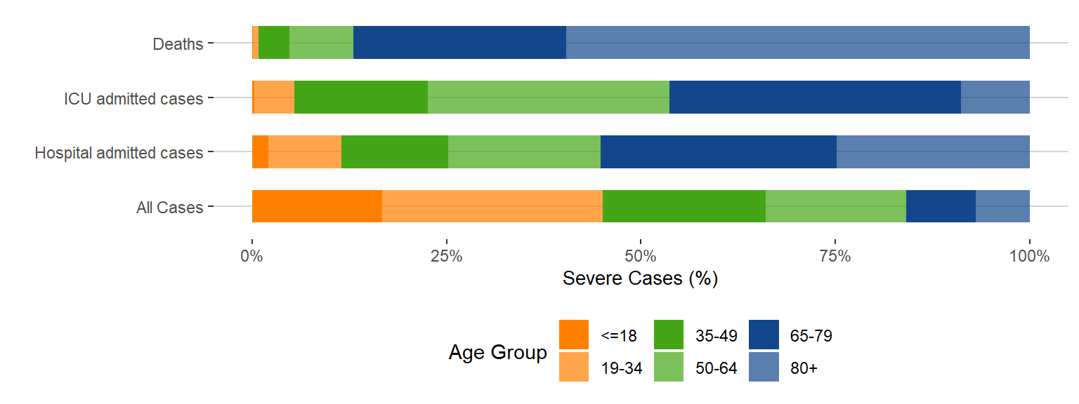 Figure 6. Age Distribution of Severe COVID-19 Cases Compared to All Cases, Manitoba, 2020 – 2021