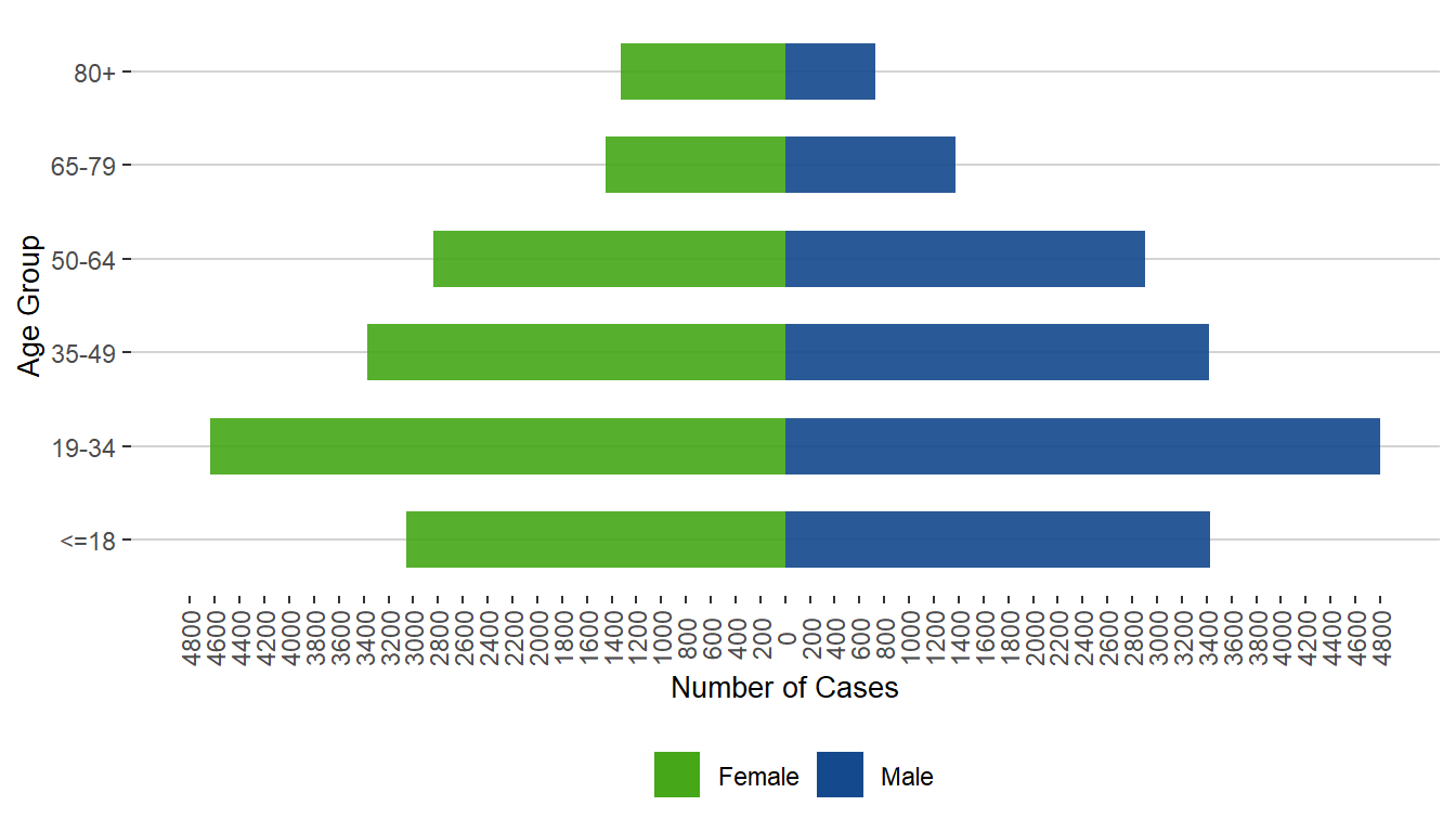 Figure 2. Cases of COVID-19 by Sex and Age Group, Manitoba, 2020 – 2021