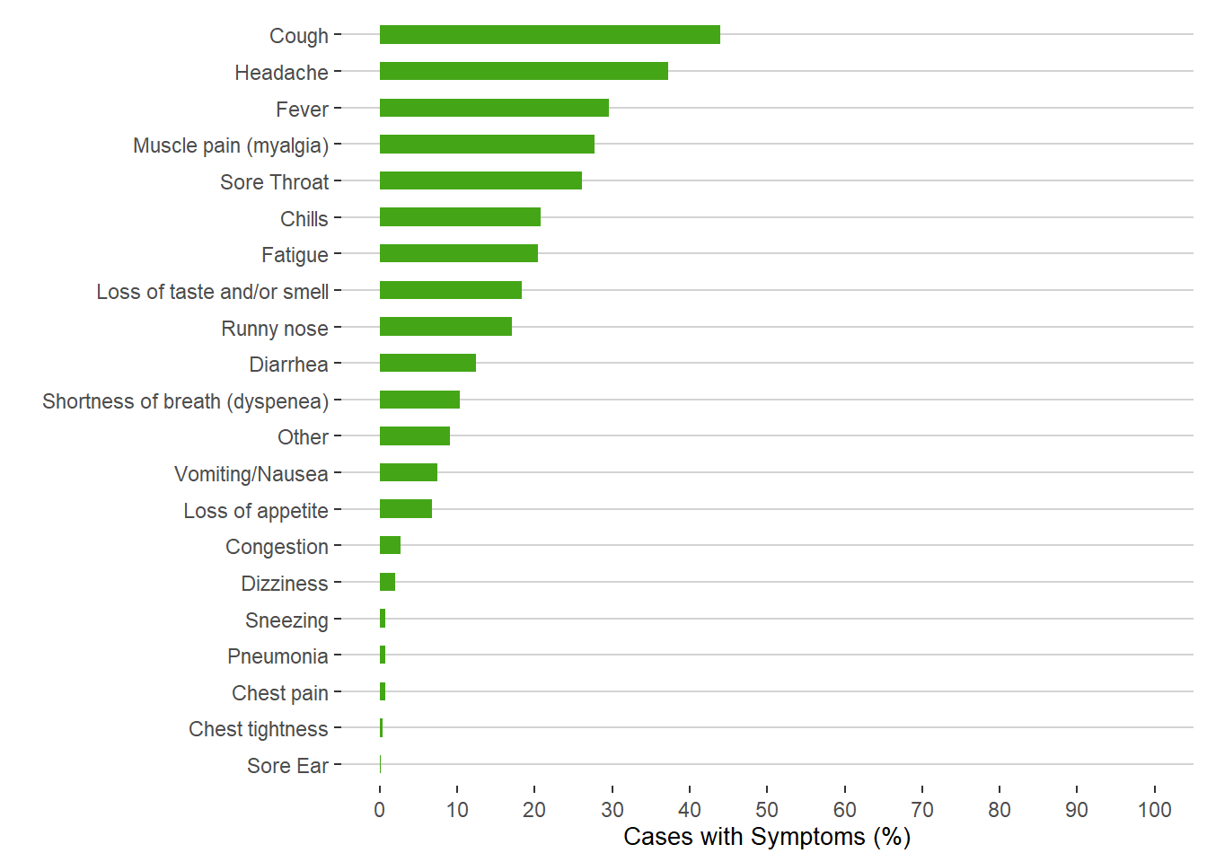 Note: Other symptoms include those less common symptoms such as sweating, runny eyes, itchy throat, etc.