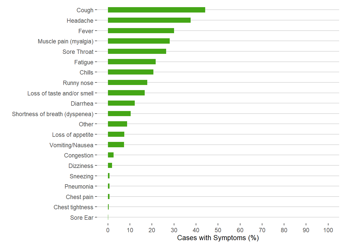 Figure 10. Percentage of Symptoms Reported by COVID-19 Cases, Manitoba, March 2020 – Present