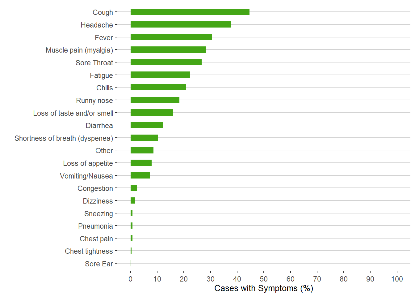 Figure 10. Percentage of Symptoms Reported by COVID-19 Cases, Manitoba, March 2020 – Present