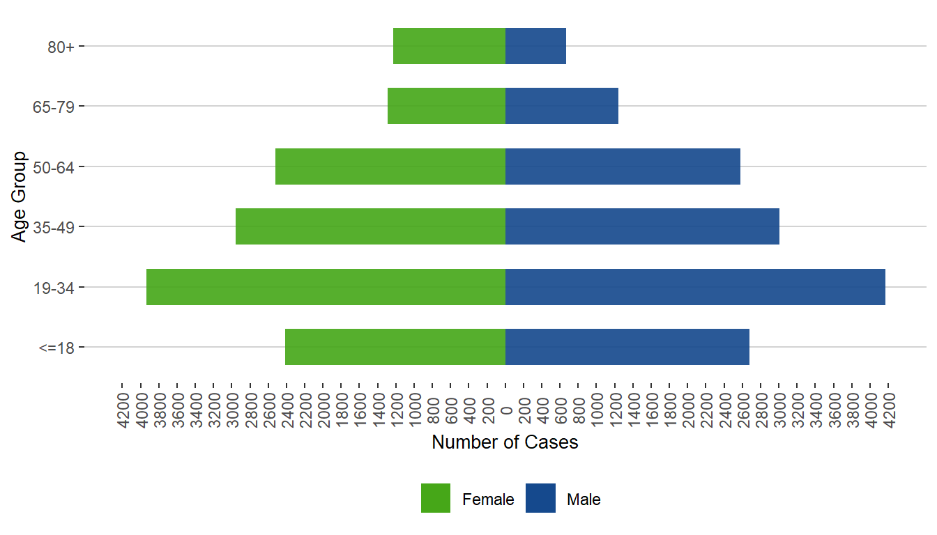Figure 2. Cases of COVID-19 by Sex and Age Group, Manitoba, 2020 – 2021