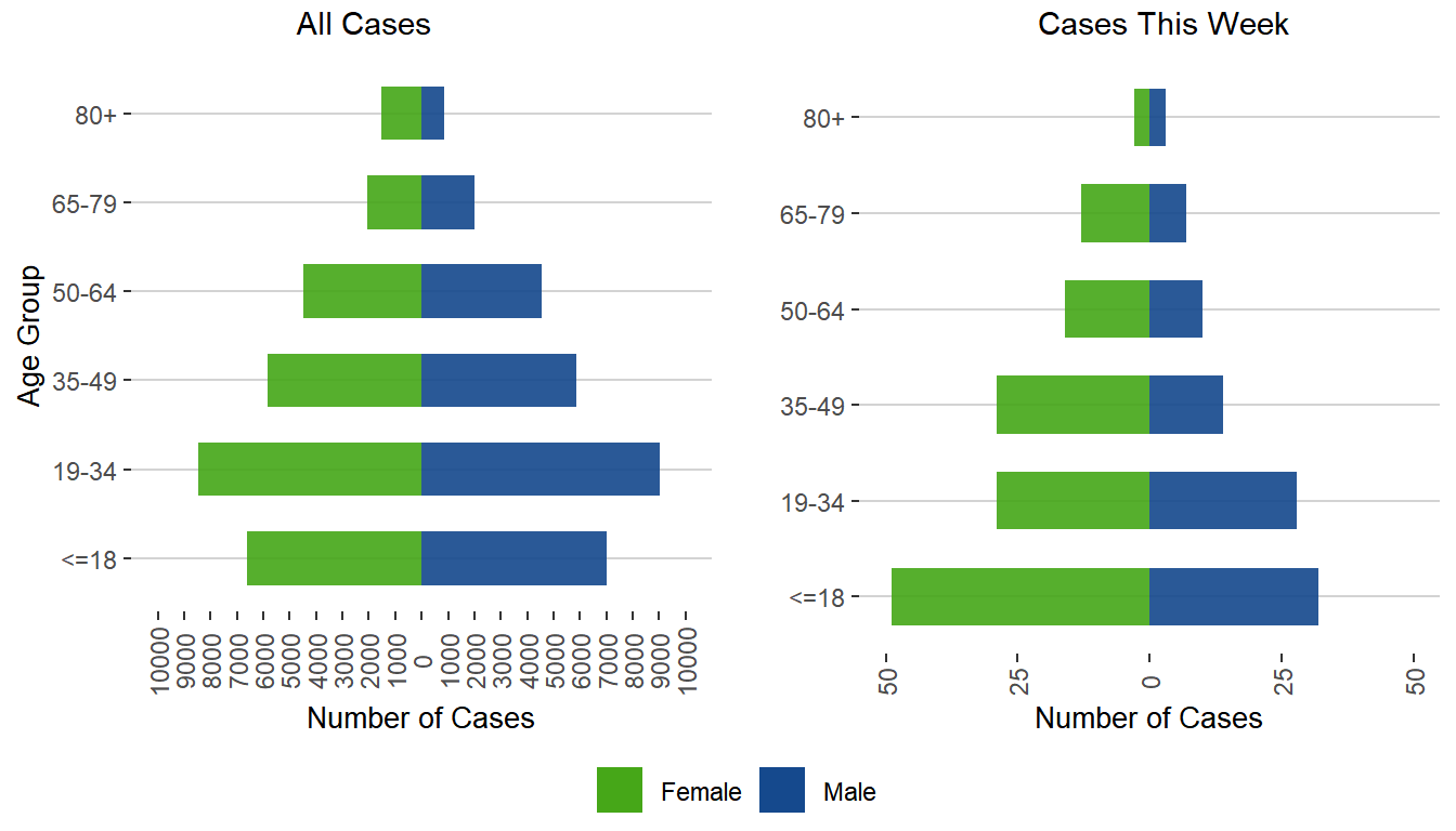 Back Figure 3. Sex and Age Distribution of COVID-19 Cases, March 1, 2020 – August 21, 2021