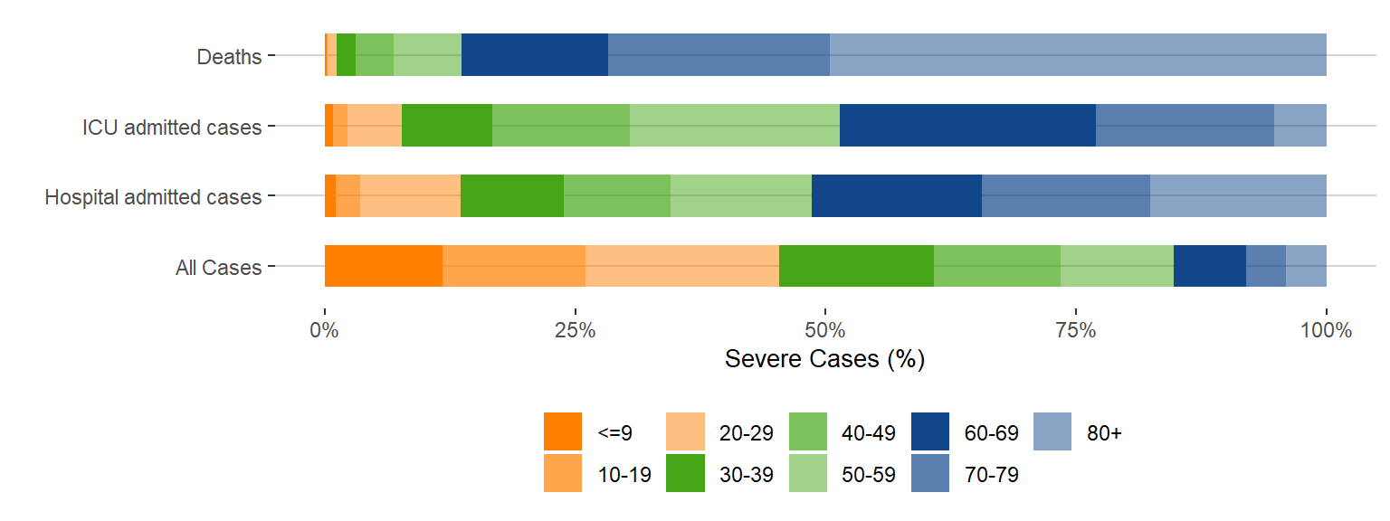Figure 9. Age Distribution of Severe COVID-19 Cases Compared to All Cases, Manitoba, March 13, 2020 – November 13, 2021